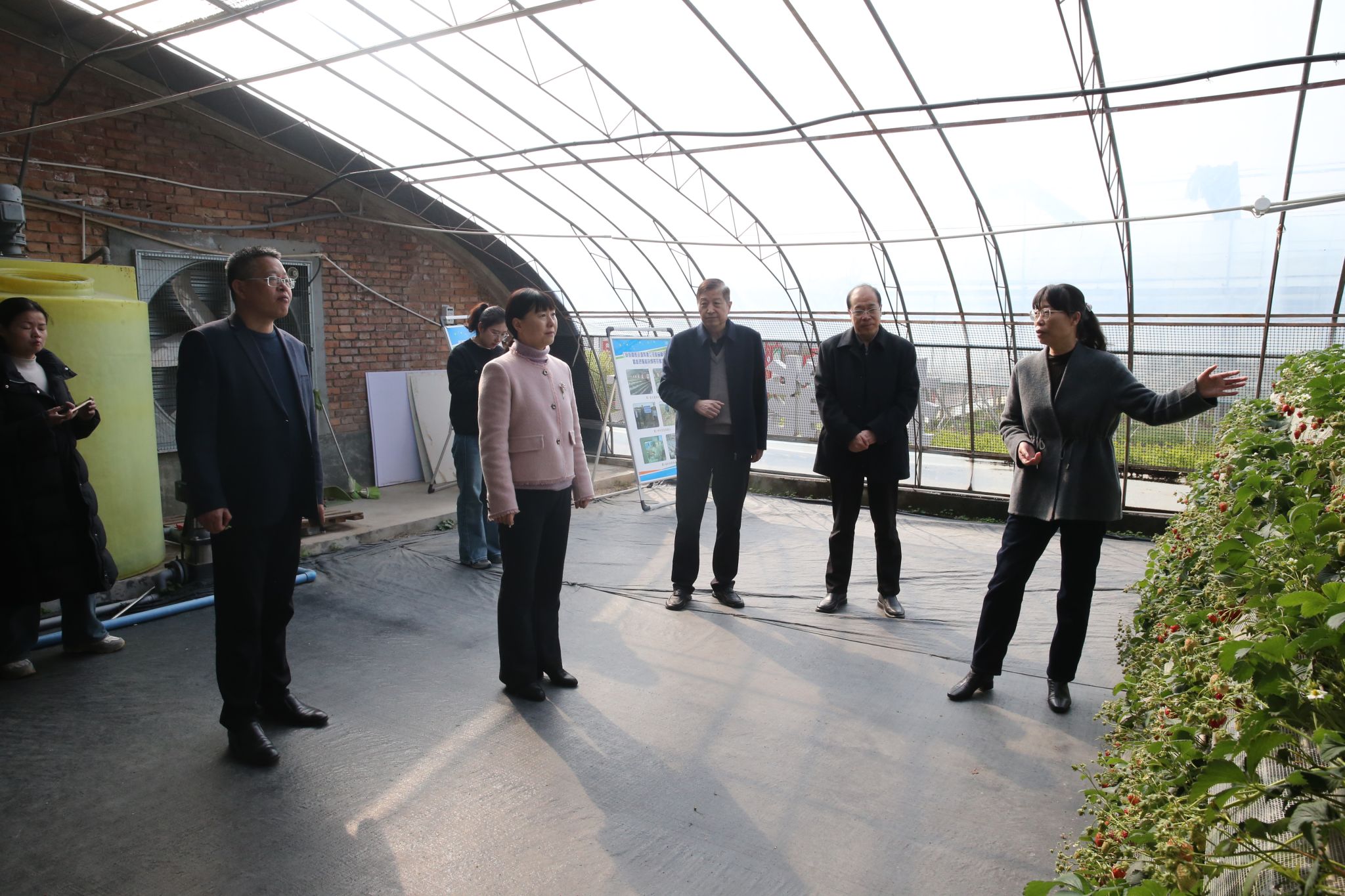 会前,赵玉萍一行参观了学校校史馆、耕读文化馆,实地考察了智慧农业虚拟仿真中心、百年伟业·红色三农研学馆和设施草莓栽培日光温室。