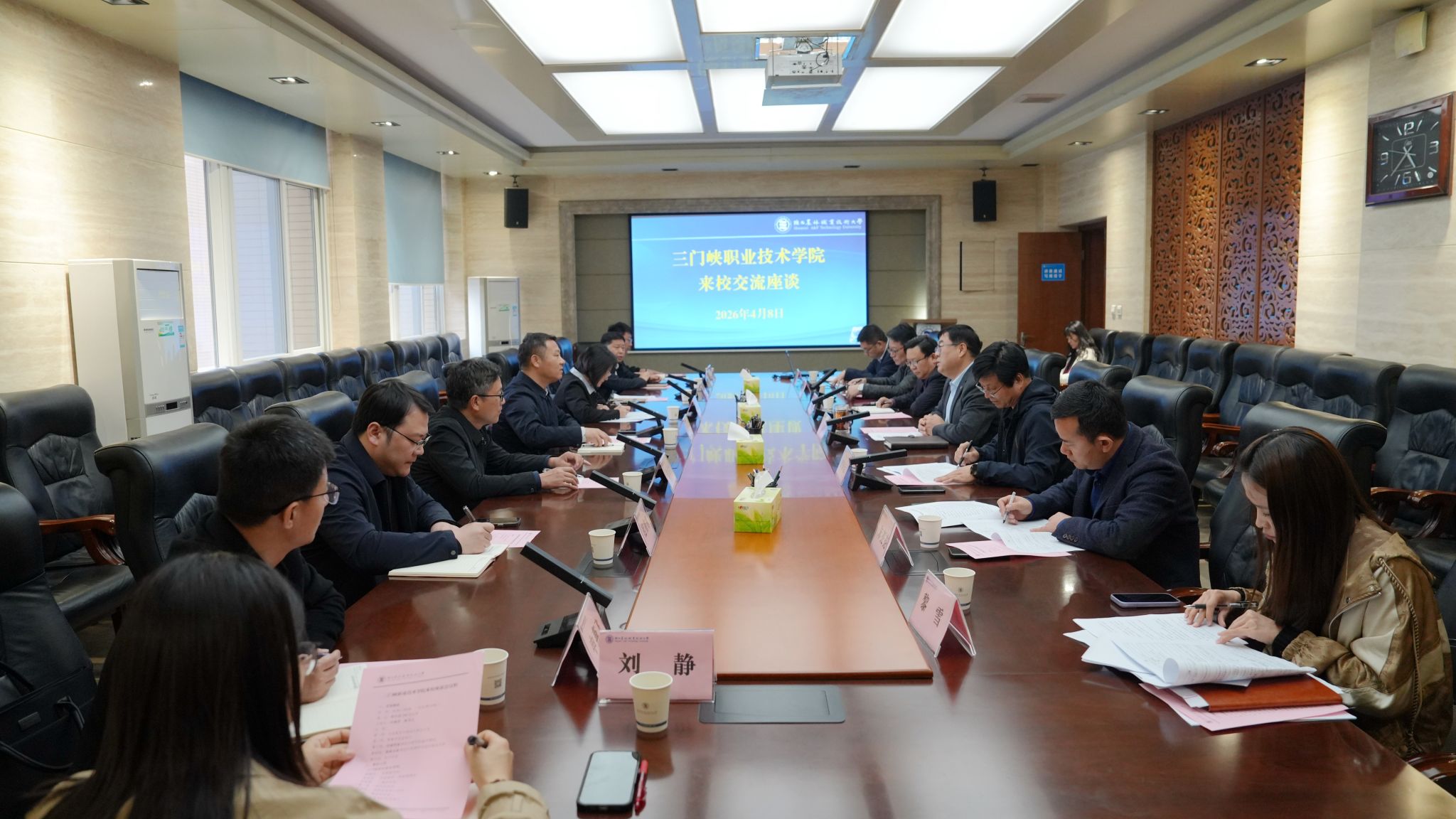 4月8日下午,三门峡职业技术学院党委副书记高超杰一行来校考察交流。党委副书记刘瑞明出席座谈会并陪同考察。