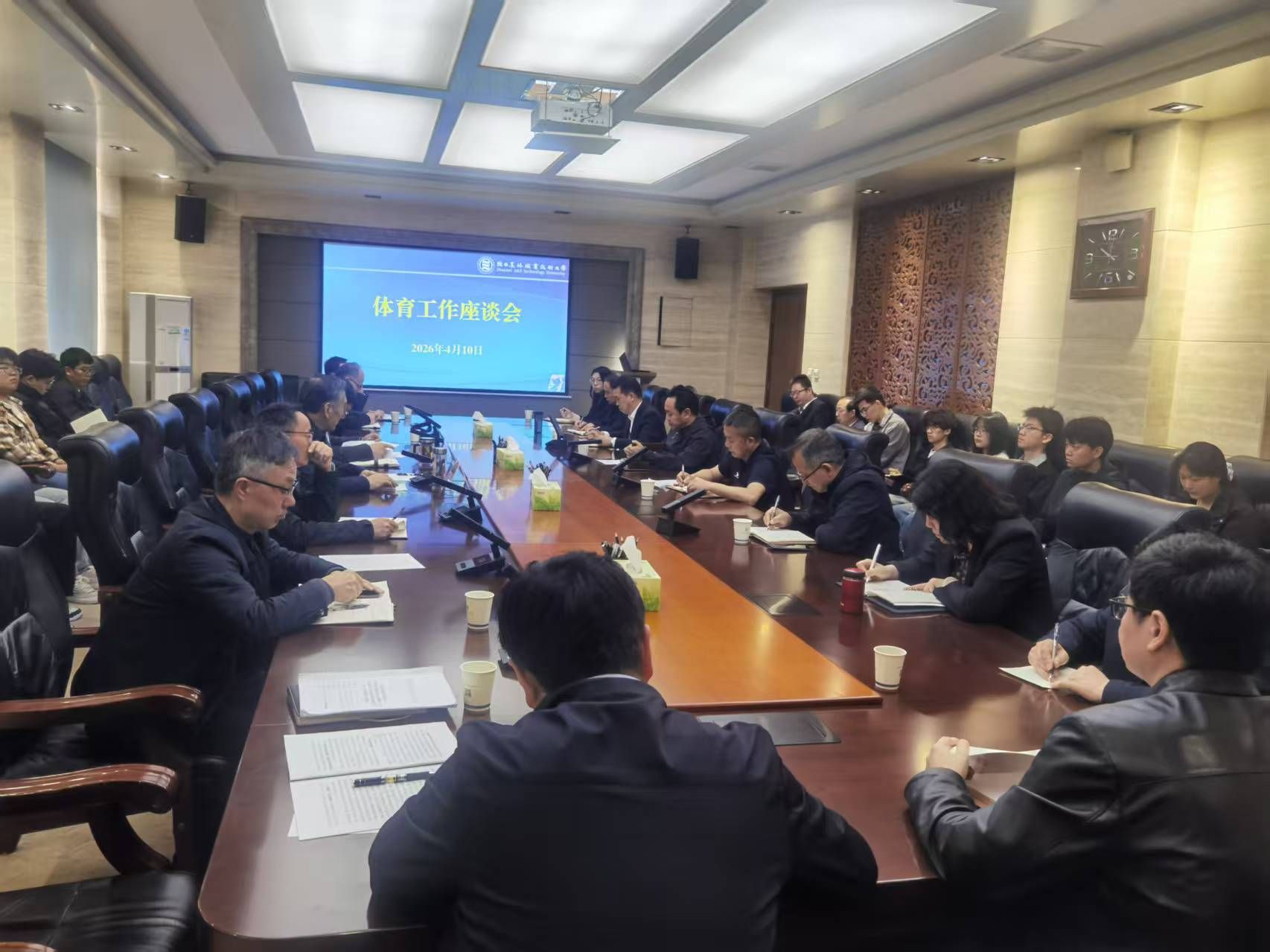 座谈会现场氛围热烈,师生代表踊跃发言,围绕体育课程教学、体育活动开展、体育社团建设、运动场馆管理等方面提出意见和建议。与会成员认真倾听、详细记录,对共性问题集中梳理分析,对解决问题的措施进行认真研究讨论。