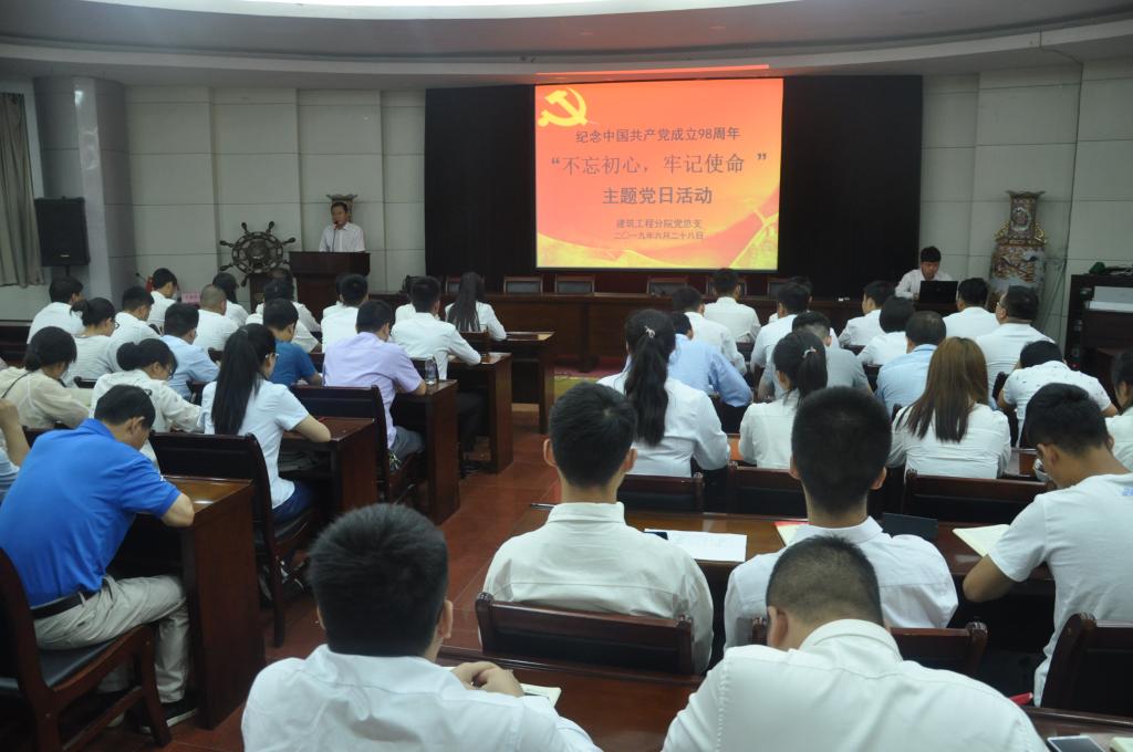 6月28日下午,建筑工程分院党总支在水韵楼二楼报告厅开展了庆祝中国共产党成立98周年“不忘初心、牢记使命”主题教育。分院全体师生党员、教职工、入党积极分子代表、学生干部代表及学生代表100余人参加了主题教育。