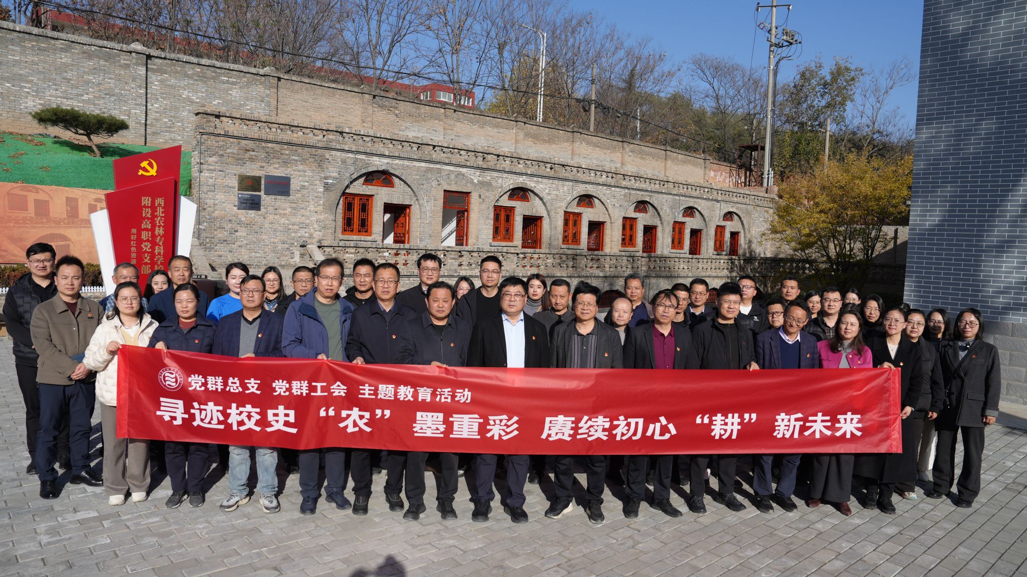 广大党员、职工先后走进西北农林专科学校附设高职党支部活动旧址、百年伟业・红色三农研学馆、校史馆和耕读文化馆,结合学习宣传贯彻党的二十届四中全会精神,学习贯彻习近平新时代中国特色社会主义思想主题教育,落实“学思想、强党性、重实践、建新功”要求,在回望校史中坚定使命,在感悟农魂中勇担重任。