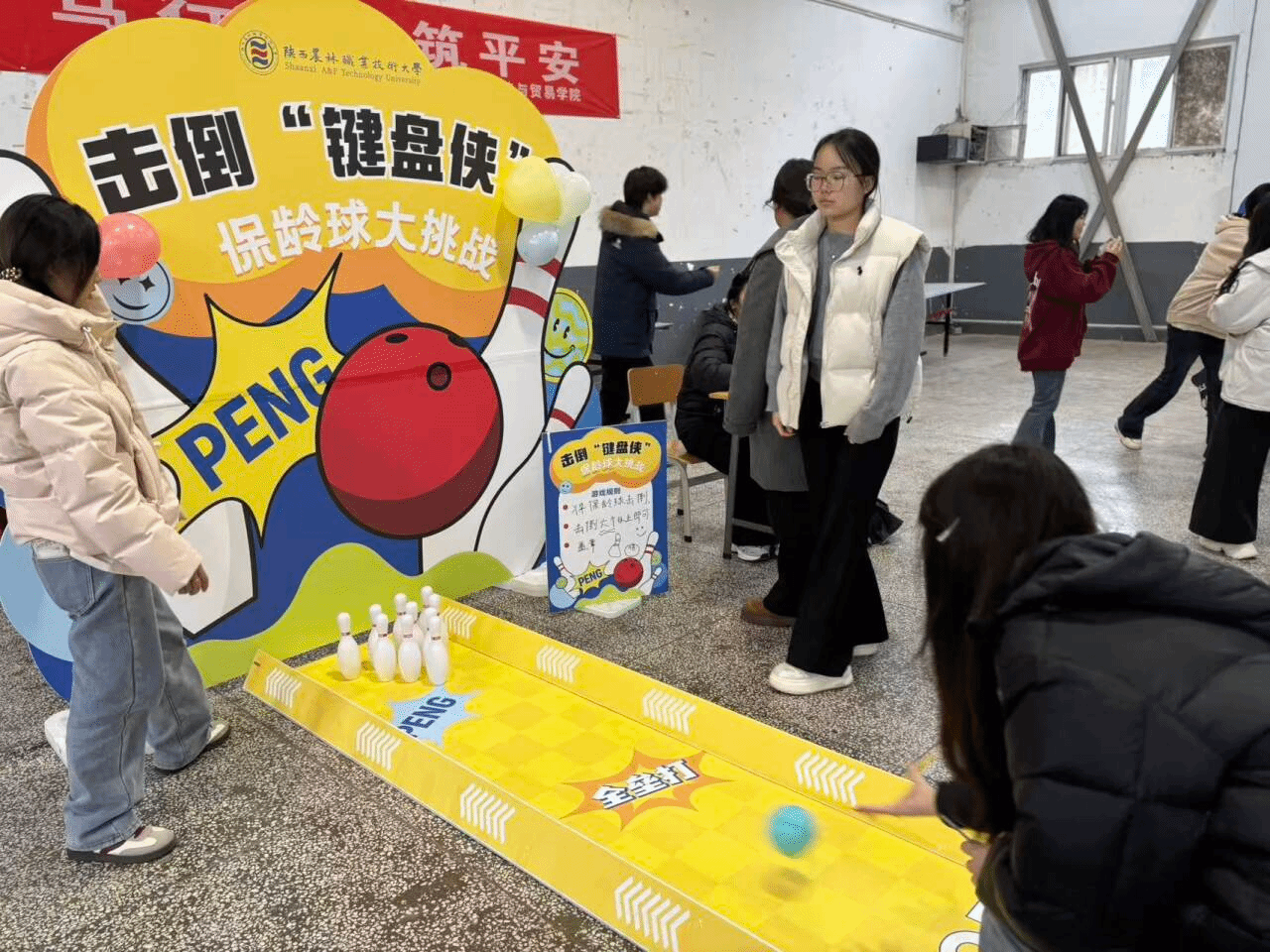 安全体验活动围绕消防安全、交通安全、网络安全、宿舍安全等方面创新设置了5个趣味体验环节。“认标识・套平安”通过套圈答题助力学生快速记忆交通标识;反诈“沙包大作战”以投掷互动强化反诈意识;“击倒键盘侠”环节引导学生树立文明上网、拒绝网络暴力的理念;“拆盲盒学安全”将安全知识融入惊喜体验,提升学习趣味性;“乒击校园贷 青春不负债”则通过乒乓球游戏,让学生认清校园贷危害,坚定拒绝校园贷的信念。