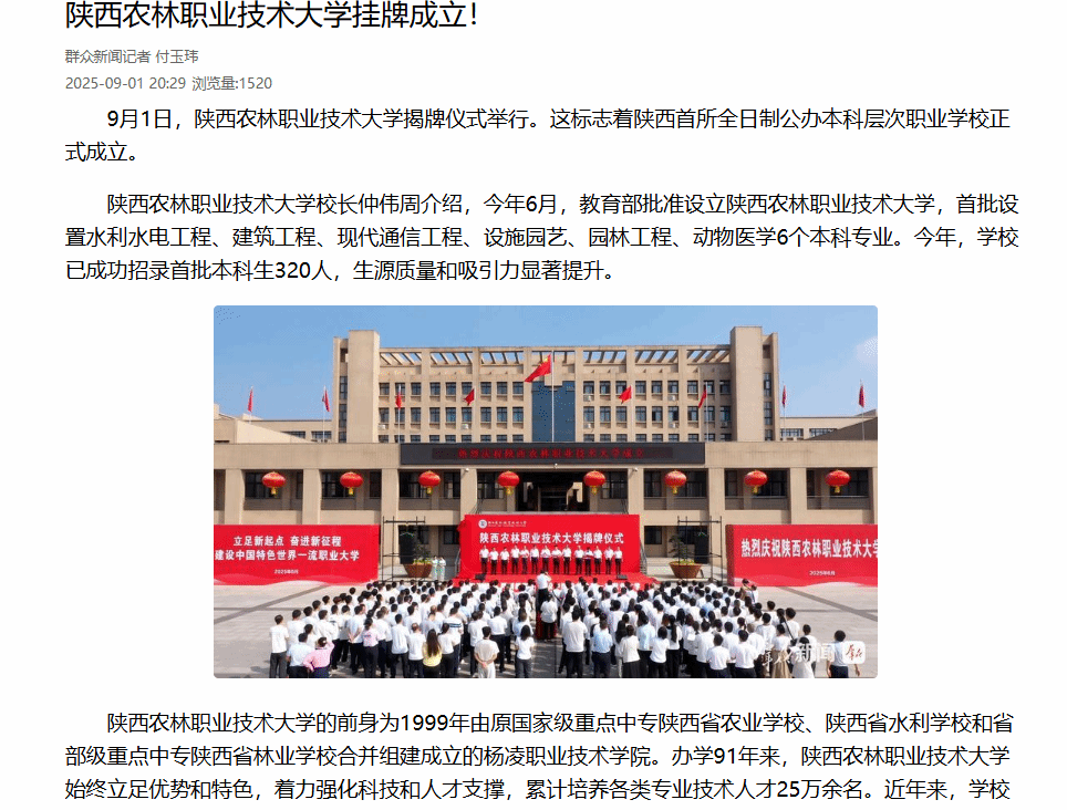 best365足球官网校长仲伟周介绍,今年6月,教育部批准设立best365足球官网,首批设置水利水电工程、建筑工程、现代通信工程、设施园艺、园林工程、动物医学6个本科专业。今年,学校已成功招录首批本科生320人,生源质量和吸引力显著提升。