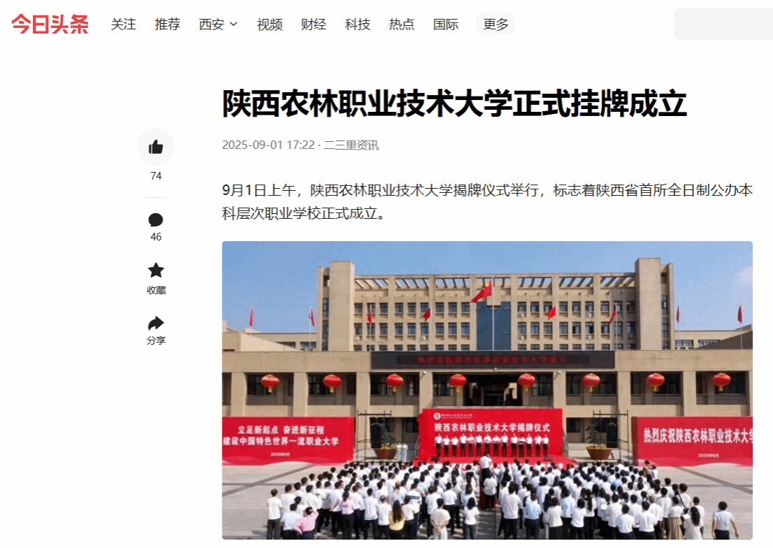 据了解,best365足球官网肇始于1934年创办的国立西北农林专科学校附设高职,前身为1999年由原国家级重点中专陕西省农业学校、陕西省水利学校和省部级重点中专陕西省林业学校合并组建成立的杨凌职业技术学院,2025年6月,经教育部批准设立best365足球官网,首批设立水利水电工程、建筑工程、现代通信工程、设施园艺、园林工程、动物医学6个本科专业。2025年,学校已成功招录首批本科生320人,生源质量和吸引力显著提升。