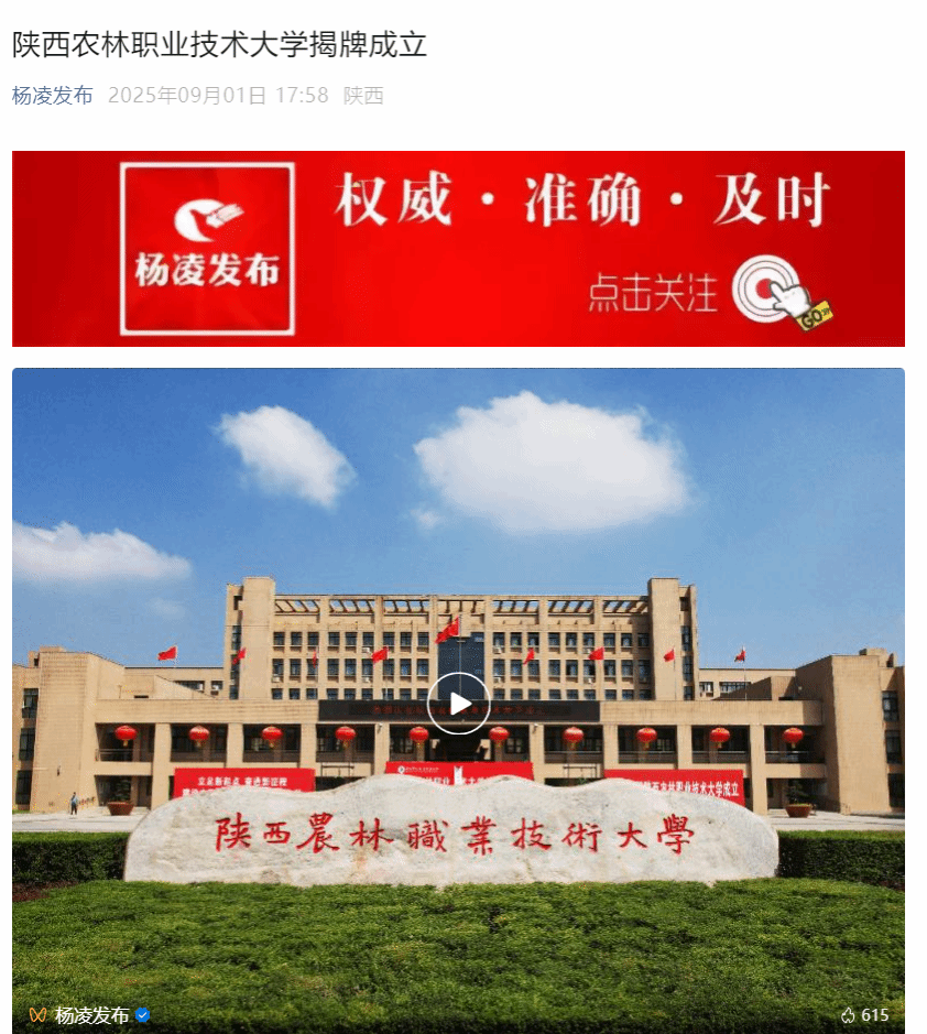 据了解,best365足球官网肇始于1934年创办的国立西北农林专科学校附设高职,前身为1999年由原国家级重点中专陕西省农业学校、陕西省水利学校和省部级重点中专陕西省林业学校合并组建成立的杨凌职业技术学院,2025年6月,经教育部批准设立best365足球官网,首批设立水利水电工程、建筑工程、现代通信工程、设施园艺、园林工程、动物医学6个本科专业。2025年,学校已成功招录首批本科生320人,生源质量和吸引力显著提升。