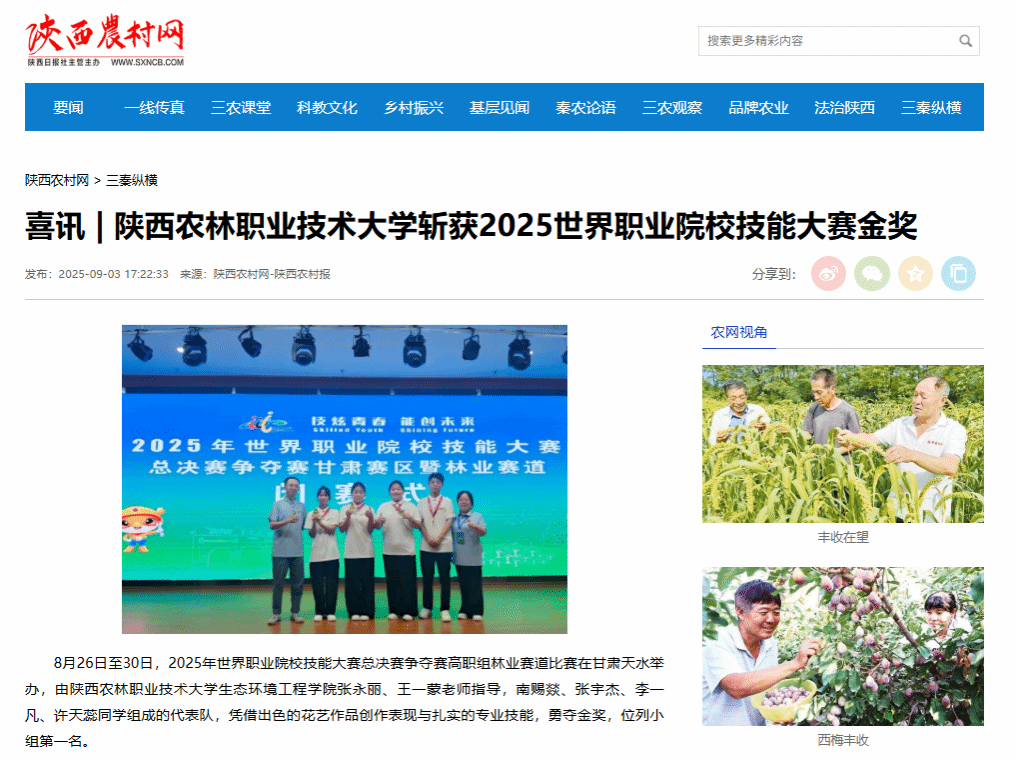 8月26日至30日,2025年世界职业院校技能大赛总决赛争夺赛高职组林业赛道比赛在甘肃天水举办,由best365足球官网生态环境工程学院张永丽、王一蒙老师指导,南赐燚、张宇杰、李一凡、许天蕊同学组成的代表队,凭借出色的花艺作品创作表现与扎实的专业技能,勇夺金奖,位列小组第一名。
