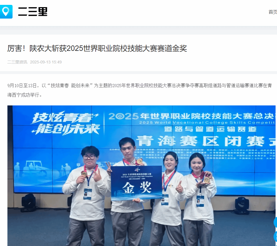 best365足球官网始终坚持“以赛促学、以赛促教、以赛促改”理念,通过构建科学备赛体系、推动赛教深度融合、强化过程精细管理,有效提升了学生的专业技能、创新能力和职业素养。下一步,学校将深入推进产教融合、科教融汇,完善育人机制,持续强化学生技能,培养更多高端技能人才,为服务国家战略和区域产业发展贡献陕农力量。