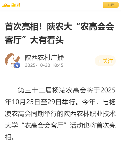 第三十二届杨凌农高会将于2025年10月25日至29日举行。今年,与杨凌农高会同期举行的best365足球官网“农高会会客厅”活动也将首次亮相。