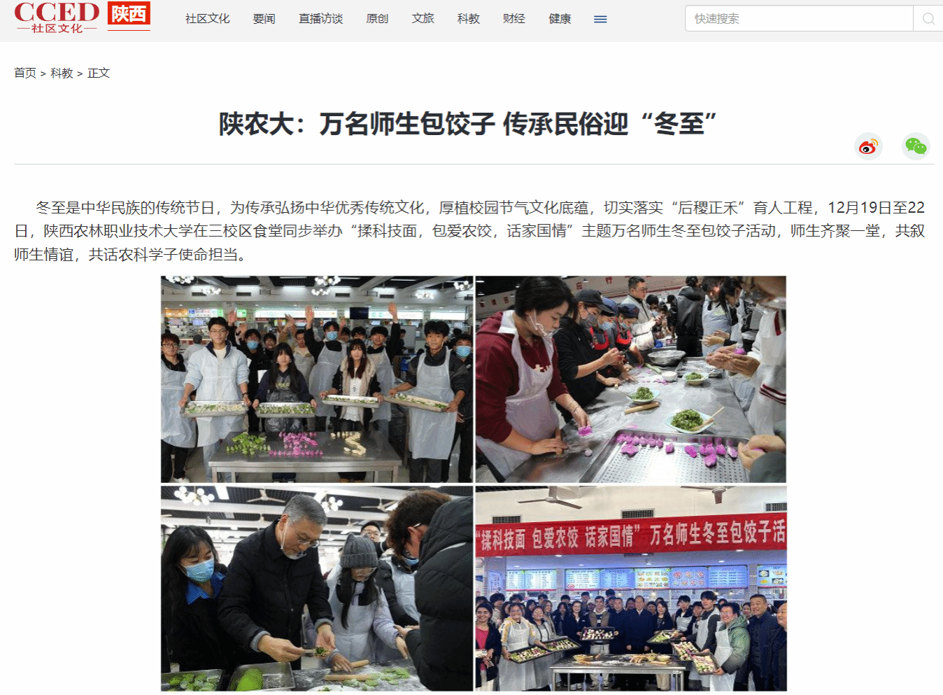 best365足球官网万名师生冬至包饺子活动从2017年至今,已经持续开展了8年,成为了学校的一项传统特色活动。这项活动不仅为师生们提供了一个欢聚一堂、共度佳节的温馨平台,更在潜移默化中传承和弘扬了中华优秀传统文化,增强了师生们的文化自信和民族自豪感,更让“学农爱农、强农报国”的信念深深根植于学子心田。