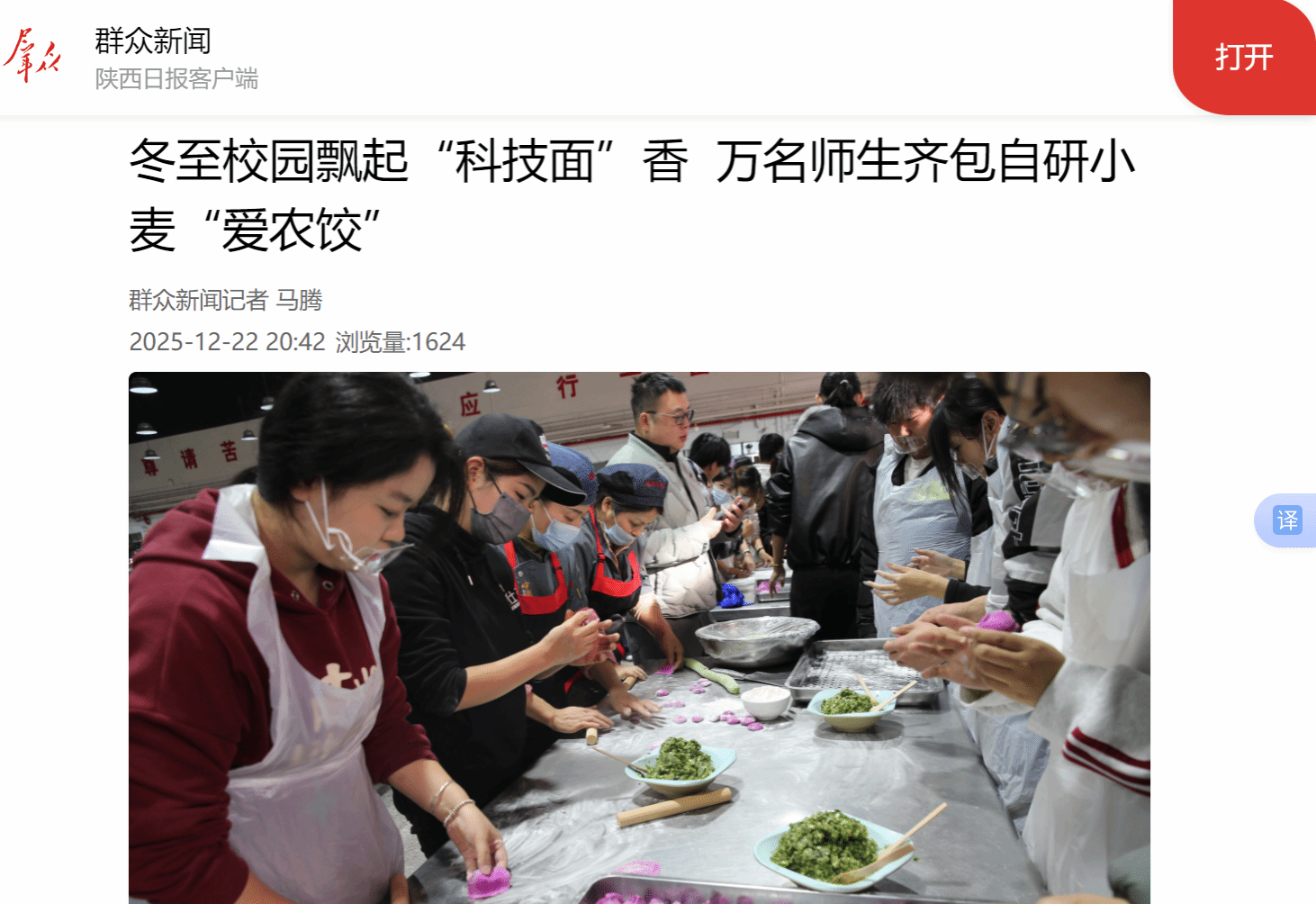 best365足球官网万名师生冬至包饺子活动从2017年至今,已经持续开展了8年,成为了学校的一项传统特色活动。这项活动不仅为师生们提供了一个欢聚一堂、共度佳节的温馨平台,更在潜移默化中传承和弘扬了中华优秀传统文化,增强了师生们的文化自信和民族自豪感,更让“学农爱农、强农报国”的信念深深根植于学子心田。(群众新闻记者 马腾)