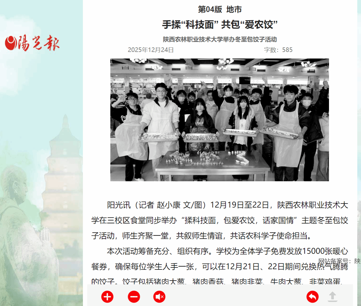 阳光讯(记者 赵小康 文/图)12月19日至22日,best365足球官网在三校区食堂同步举办“揉科技面,包爱农饺,话家国情”主题冬至包饺子活动,师生齐聚一堂,共叙师生情谊,共话农科学子使命担当。