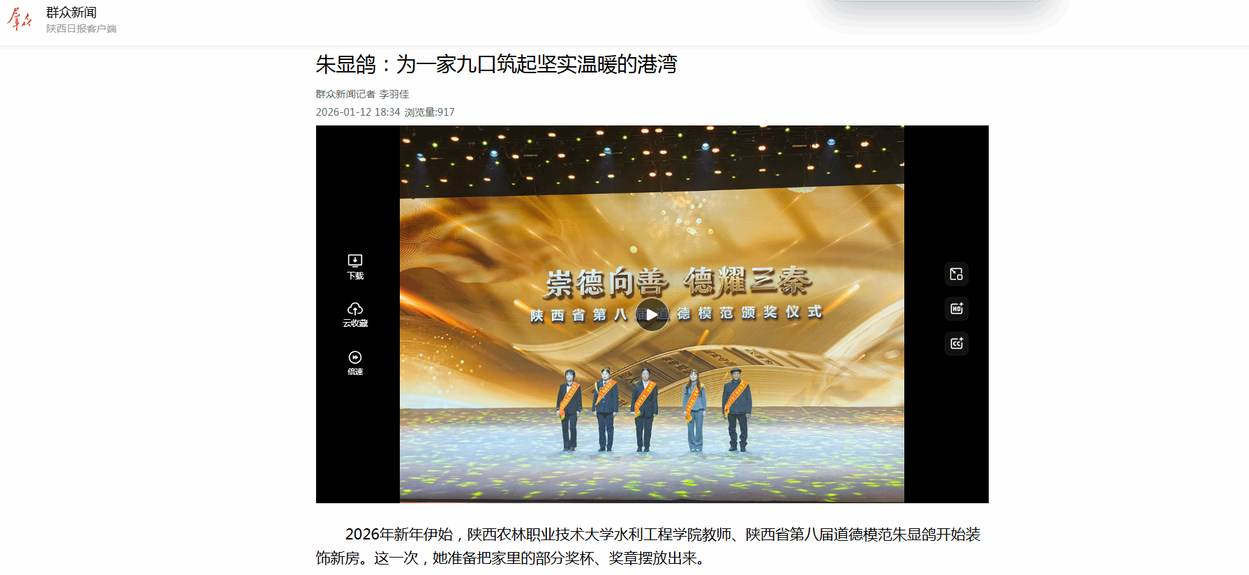 1月9日,朱显鸽说:“有我的道德模范奖杯、有丈夫在部队里得的军功章……希望这些肯定和荣誉能够给孩子一种激励,让好家风传承下去。”