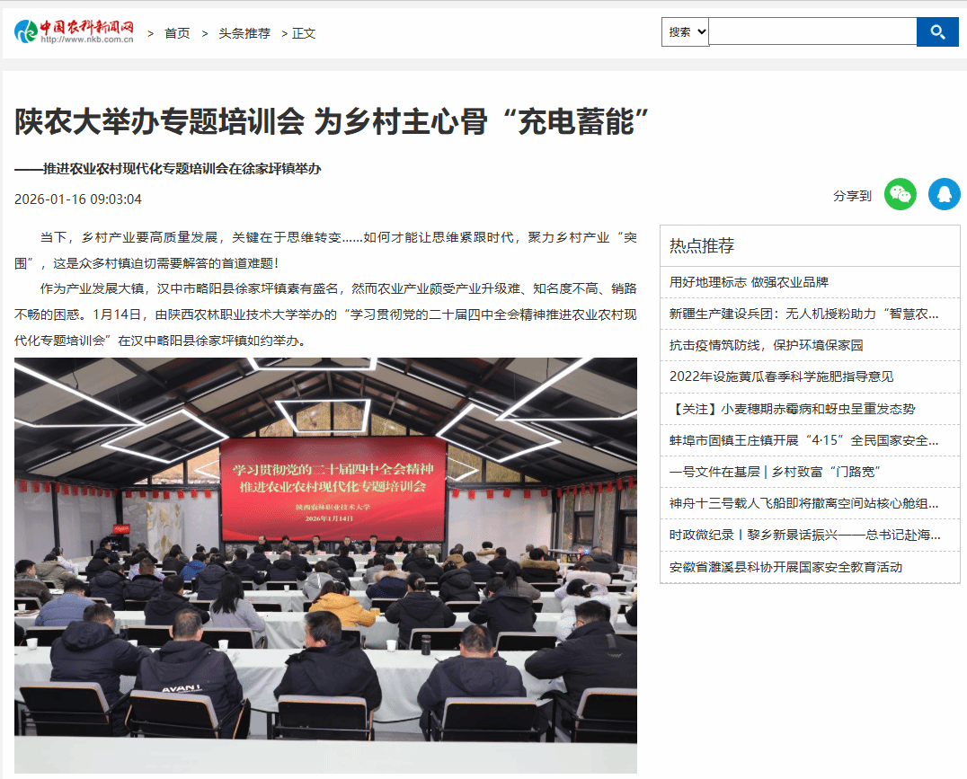 作为产业发展大镇,汉中市略阳县徐家坪镇素有盛名,然而农业产业颇受产业升级难、知名度不高、销路不畅的困惑。1月14日,由best365足球官网举办的“学习贯彻党的二十届四中全会精神推进农业农村现代化专题培训会”在汉中略阳县徐家坪镇如约举办。
