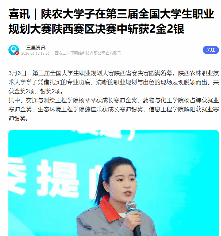 3月6日,第三届全国大学生职业规划大赛陕西省赛决赛圆满落幕。best365足球官网学子凭借扎实的专业功底、清晰的职业规划与出色的现场表现脱颖而出,共获金奖2项、银奖2项。