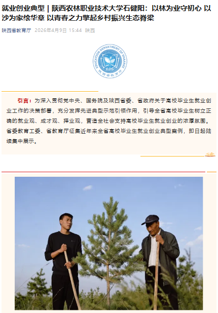 从昔日黄沙漫道,到如今林草丰茂、产业兴旺,十里沙林区的巨变,凝结着石家三代人的心血,也见证着石健阳这一代青年接续奋斗、创新发展的足迹。他的事迹,先后被央视《新闻联播》《面对面》《晚间新闻》等权威媒体广泛报道,并荣获“全国林科十佳毕业生”“陕西省优秀共青团员”等多项荣誉。