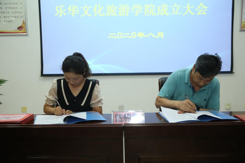 8月7日下午,学院与陕西乐华欢乐世界文化发展有限公司校企合作签约仪式暨“乐华文化旅游学院”成立大会在北校区举行。学院副院长张迪,旅游与管理分院党总支书记董育公、副院长问建军,陕西乐华欢乐世界文化发展有限公司人力资源总监范蕊宁、人力资源经理雷晗,旅游与管理分院全体教师出席大会。