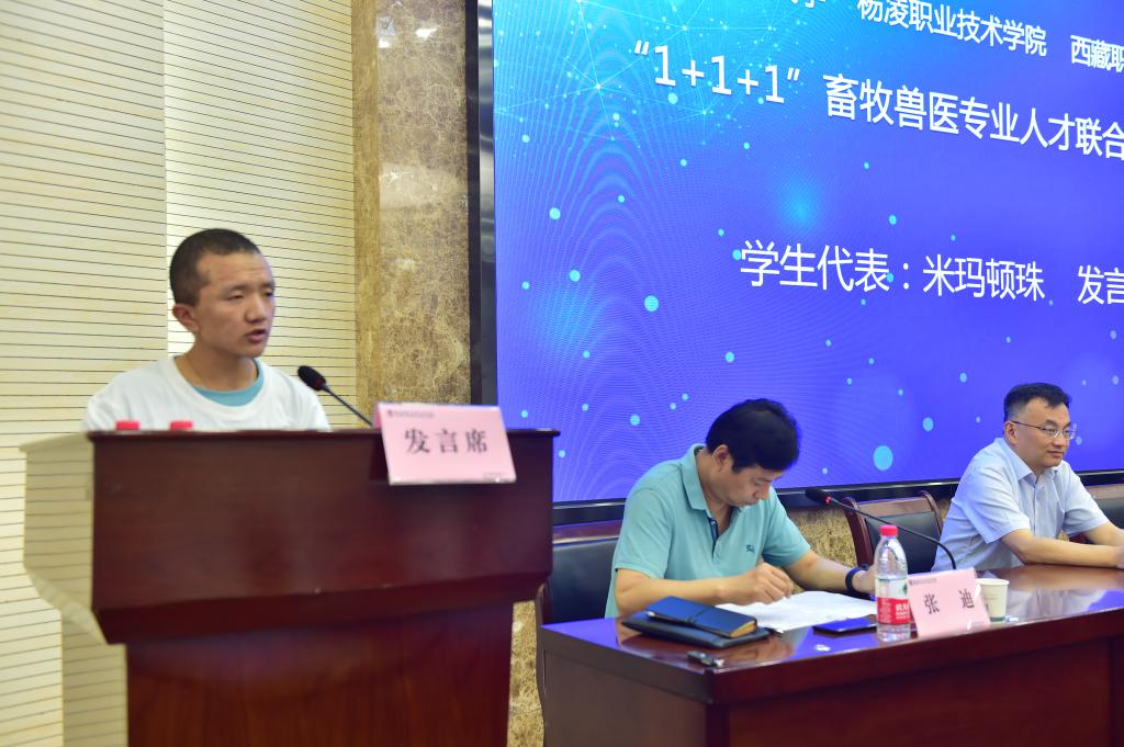 随后,畜牧兽医专业联合培养班的辅导员宋博利老师、班主任李龙博士、学生代表米玛顿珠进行了表态发言。