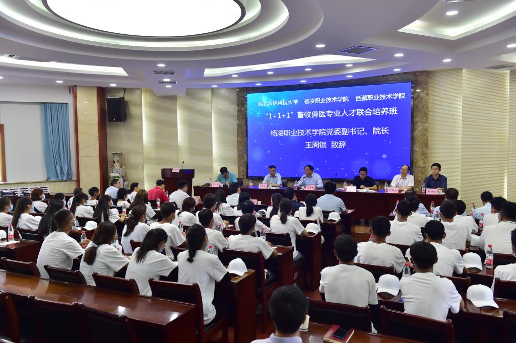 杨凌职业技术学院党委委员、教务处处长拜存有、学生处处长李战虎、动物工程分院党总支副书记张涉、副院长张振仓,西藏职业技术学院副院长、动物科学技术学院院长程晓盈,两个学院的教师代表,以及畜牧兽医专业联合培养班2名班主任和43名学生参加了开班仪式。