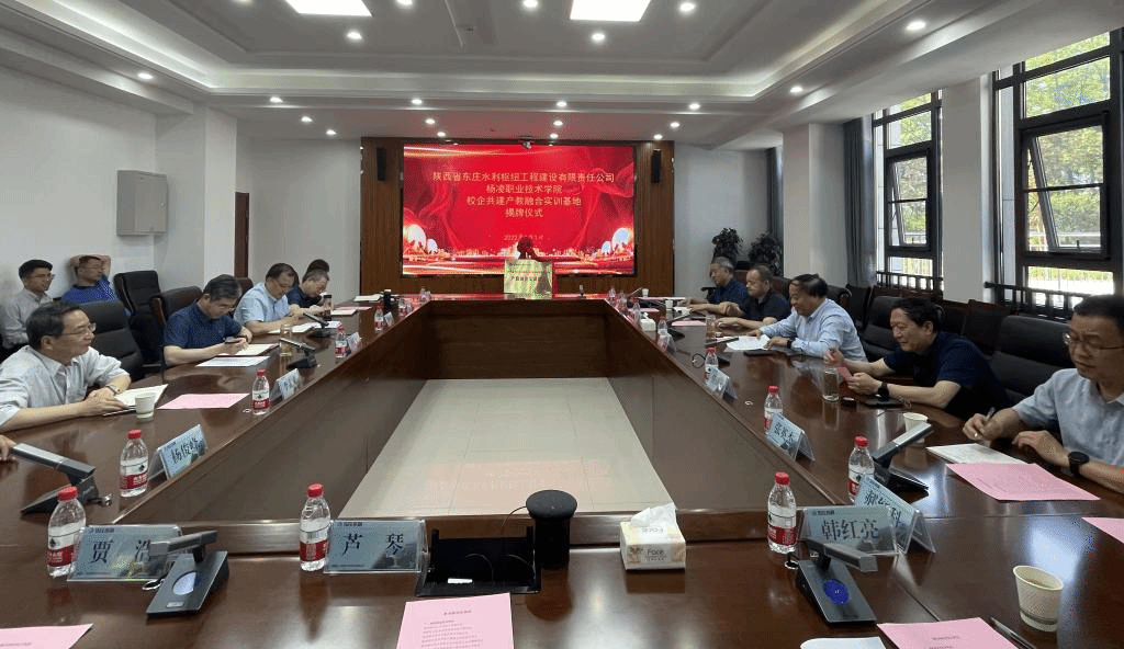 6月1日,学校与陕西省东庄水利枢纽工程建设有限责任公司共建产教融合实训基地仪式在东庄水利枢纽工程建设营地举行。校长王周锁,东庄水利公司党委书记、董事长肖宏武共同为基地揭牌。党委副书记任得元,科技与教育研究处、产教融合处、水利工程学院负责人及其教师代表;东庄水利公司党委副书记、总经理刘晓明,党委副书记李孟来,副总经理刘涛,总工程师杨俊峰,全体中层干部参加了相关活动。