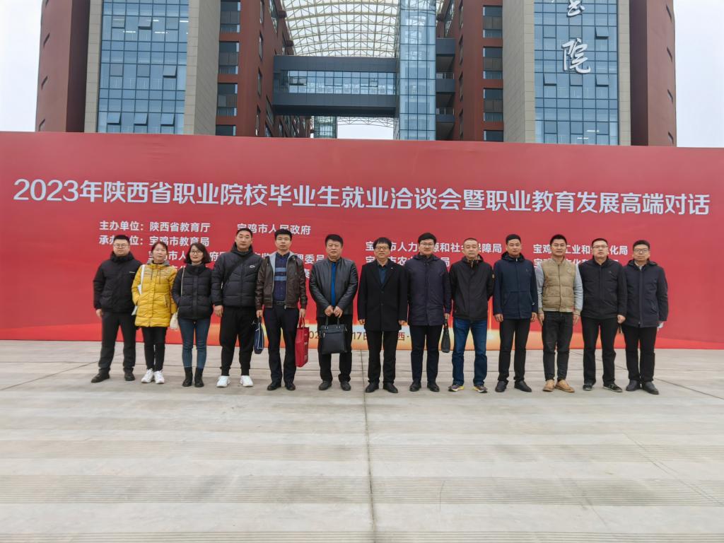 3月17日,2023年陕西省职业院校毕业生就业洽谈会暨职业教育发展高端对话启动活动在宝鸡举行。学校招生就业处处长李岩,招生就业处全体人员及各二级学院学工办主任共13人参加就业洽谈会。
