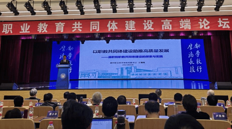 4月6日至7日,“职业教育共同体建设高端论坛”在温州职业技术学院举办。本次论坛由中国高等教育学会职业技术教育分会主办,政校行企各界人士齐聚一堂,共商职教发展、共话职教未来,共同探讨职业教育共同体建设之路。我校副校长蒋平江、生物工程学院党总支副书记陈吼参加。