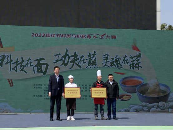 4月8日上午,杨凌农科城马拉松蘸水面大赛暨品鉴活动在会展广场举行。由我校生物工程学院师生组成的杨凌职院代表队获大赛科技创新奖。