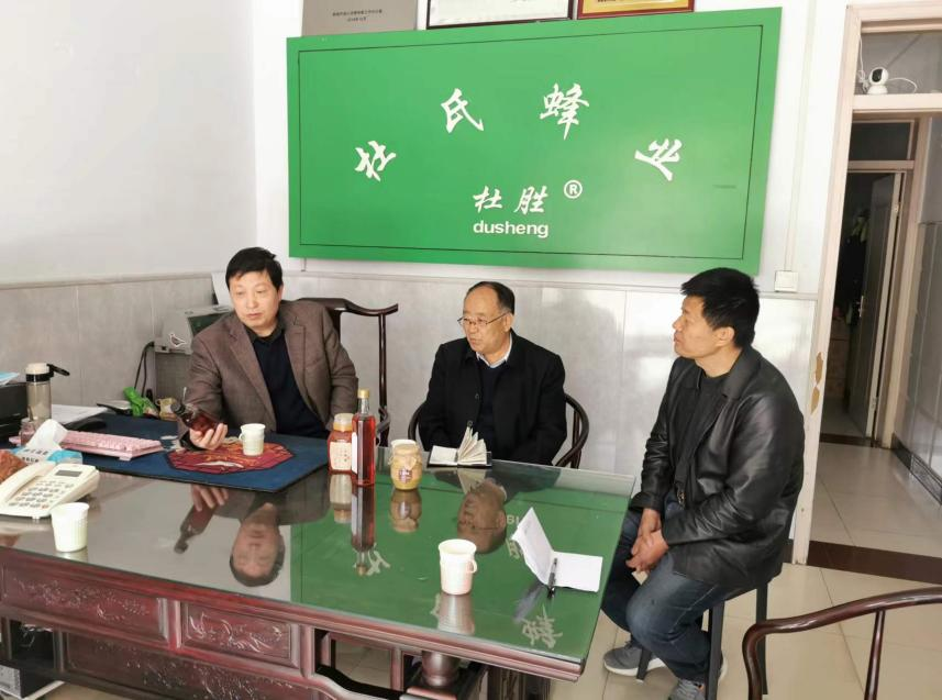 在乡村产业振兴带头人“头雁”杜胜岳的陪同下,专家一行考察了韩城杜氏蜂业专业合作社的销售门店、加工厂及养蜂基地,深入了解了合作社生产运营规模、产品开发、销售模式等。黎九洲从中蜂的养殖技术、蜂蜜的采收、质量的控制等方面提出建议和指导。祝战斌针对合作社出现的蜂产品开发瓶颈,提出精确检测、制定企业标准,进入正规销售渠道等建议。同时,结合目前蜂产品的市场需求及企业实际情况,共同研判了下一步拟开发系列产品,体系专家将在产品的配方、工艺、包装及营销等技术方面给予大力支持。