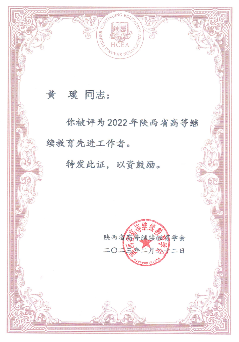 近日,陕西省高等继续教育学会公布了2022年陕西省高等继续教育优秀继续教育学院、继续教育优秀校外教学站点、继续教育先进工作者评选结果,我校继续教育与培训学院荣获2022年陕西省高等继续教育优秀教育学院,黄璞被评为2022年陕西省高等继续教育先进工作者。这是我校继续教育与培训学院连续三次获此殊荣。