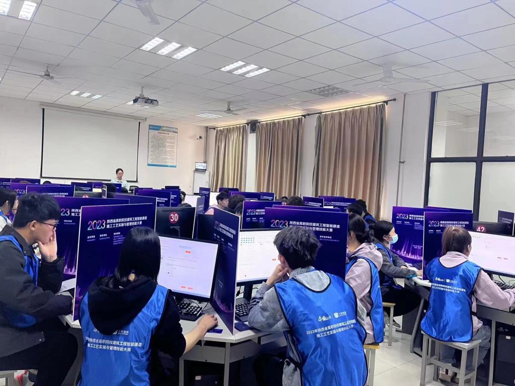 4月28日,2023年陕西省高等职业院校技能大赛“建筑工程智能建造施工工艺实施与管理”赛项在我校建筑工程学院智能建造实训中心举行,来自全省24所参赛院校47支参赛队的141名参赛选手同台竞技。大赛由省教育厅主办,我校承办,陕西省建筑业协会、陕西省智能建造研究院、中铁建安工程设计院有限公司协办,西安三好软件技术股份有限公司提供技术支持。