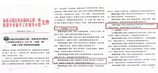 学校2学院获杨凌示范区五联一抓优秀包抓工作队称号