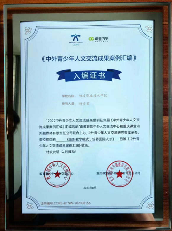 近日,教育部中外人文交流中心组织编撰的《中外青少年人文交流成果案例》正式出版发行,我校典型案例《创新教学模式,培养国际人才》成功入编,这也是陕西省入编本书的唯一案例。