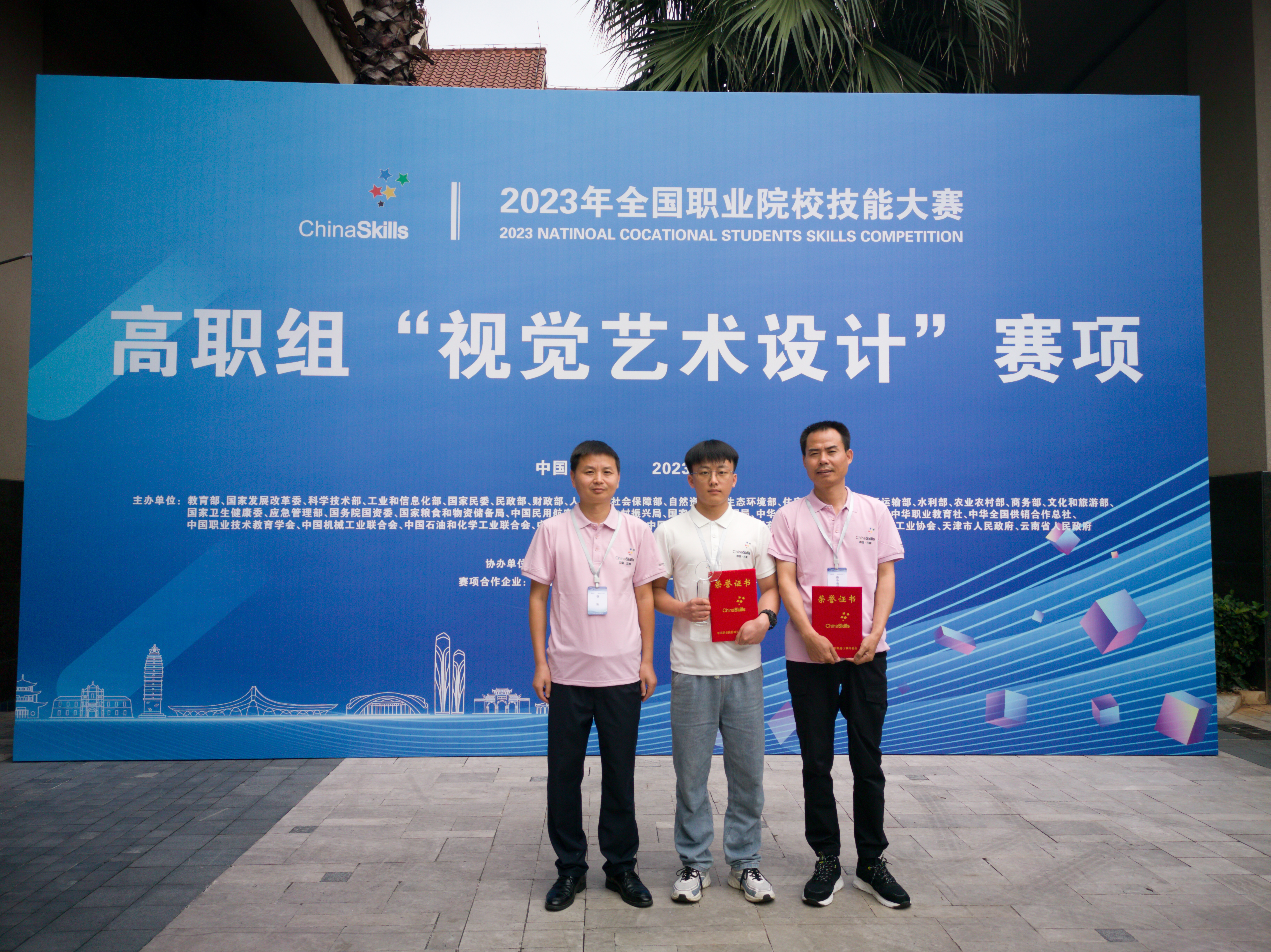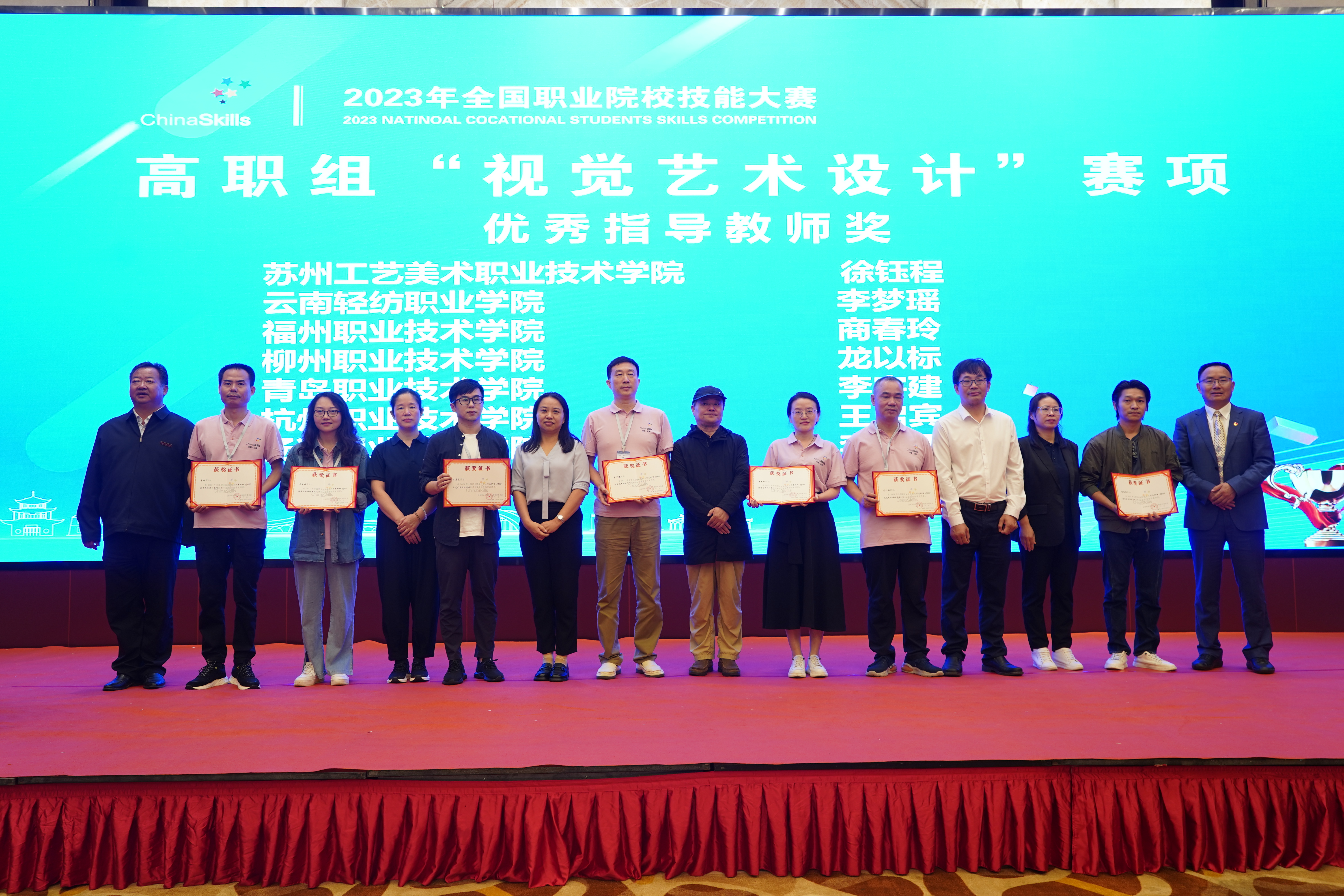 9月27日至28日,2023年全国职业院校技能大赛高职组“视觉艺术设计”赛项在云南轻纺职业学院举办, 共有来自全国31个省、自治区、直辖市的71支代表队同台竞技。经过激烈拼搏,我校生态环境工程学院路马伟同学勇夺全国一等奖,李轩老师荣获“优秀指导教师”称号。