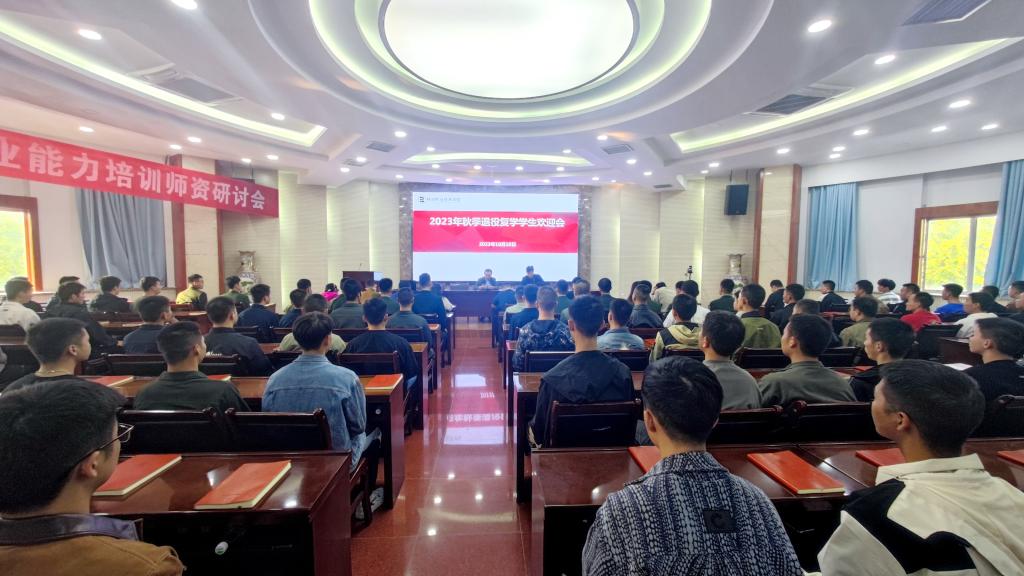 10月10日下午,我校在水韵楼报告厅举行2023年退役复学大学生欢迎仪式。学工部部长陈军峰、征兵与国防教育科工作人员、各学院相关负责人,以及2023年104名退役复学大学生参加了仪式。