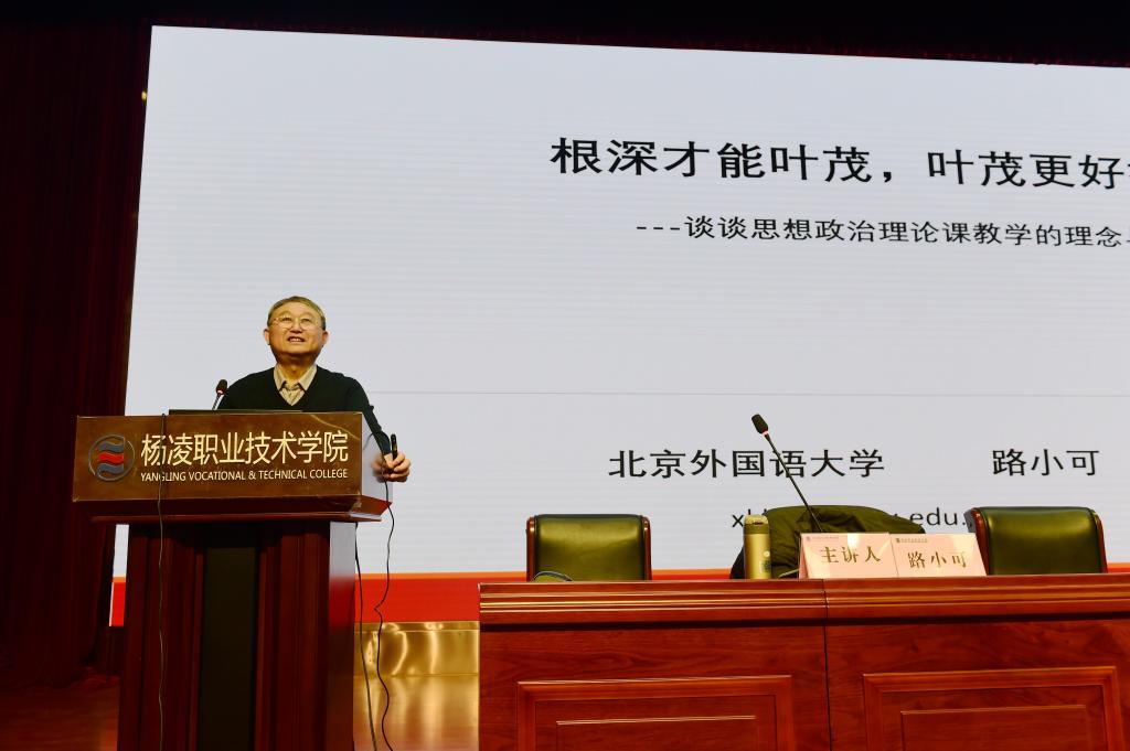 调研期间,路小可为师生作“根深才能叶茂,叶茂才能更好护根——谈谈思政课教学理念和教学方法”专题报告。他从历史和现实的结合中正确认识思政课的性质地位和作用、有关思政课教学理念的探讨、谈谈思政课的教学方法和教学管理等方面进行深入解读,并分享自己从教30余年的教学体会和感悟,最后寄语学生要树牢爱国之心、强国之志、报国之情,为实现中国梦注入青春能量。