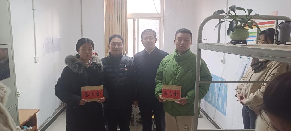张朝晖与同学们亲切交谈,了解学生实际情况,并表示学校将密切关注同学们的需求,给予同学们多方位的帮扶,并勉励他们努力学习,用知识改变命运,用奋斗成就未来。同学们向学校表示感谢并承诺今后会认真学习,锤炼品格,回报学校,回报国家,带领家庭脱离困境。