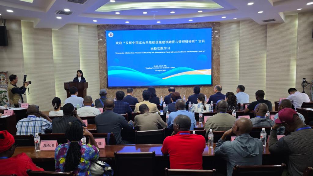 4月22日上午,学校在南校区举办“分享职教标准,促进国际合作”主题活动。校长仲伟周出席活动并讲话,杨凌示范区外事办主任马静、副主任张学明出席活动,2024年发展中国家公共基础设施项目融资与管理研修班官员,以及我校国际合作交流处、水利工程学院、建筑工程学院、交通测绘工程学院和机电工程学院等部门和分院负责人参加活动。