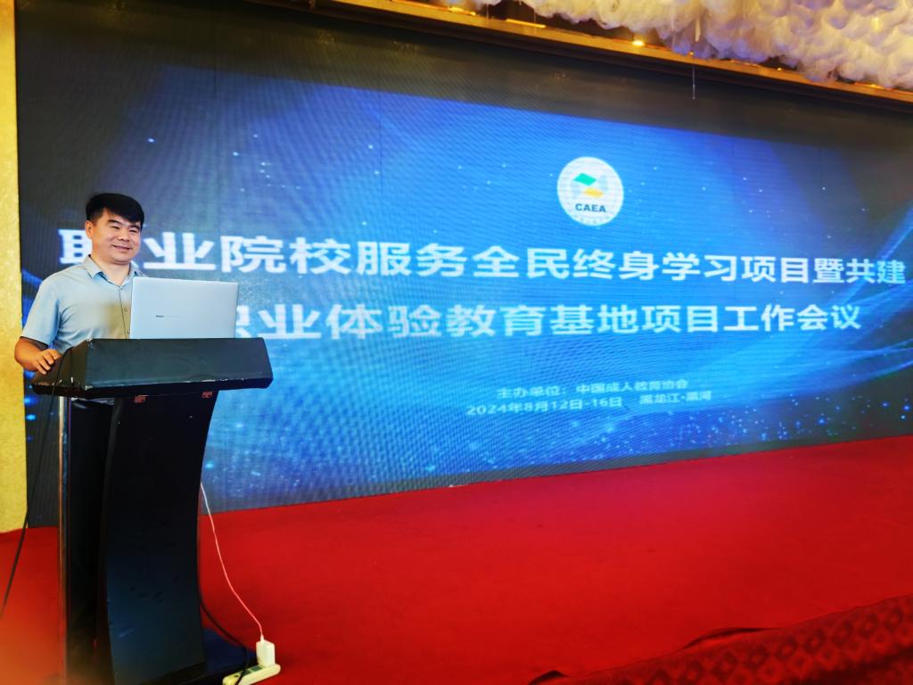 近日,全国职业院校服务全民终身学习项目暨共建职业体验教育基地项目工作会议在黑河召开。副校长胡俊鹏出席会议并作交流分享。继续教育与培训学院负责人黄璞做项目汇报。
