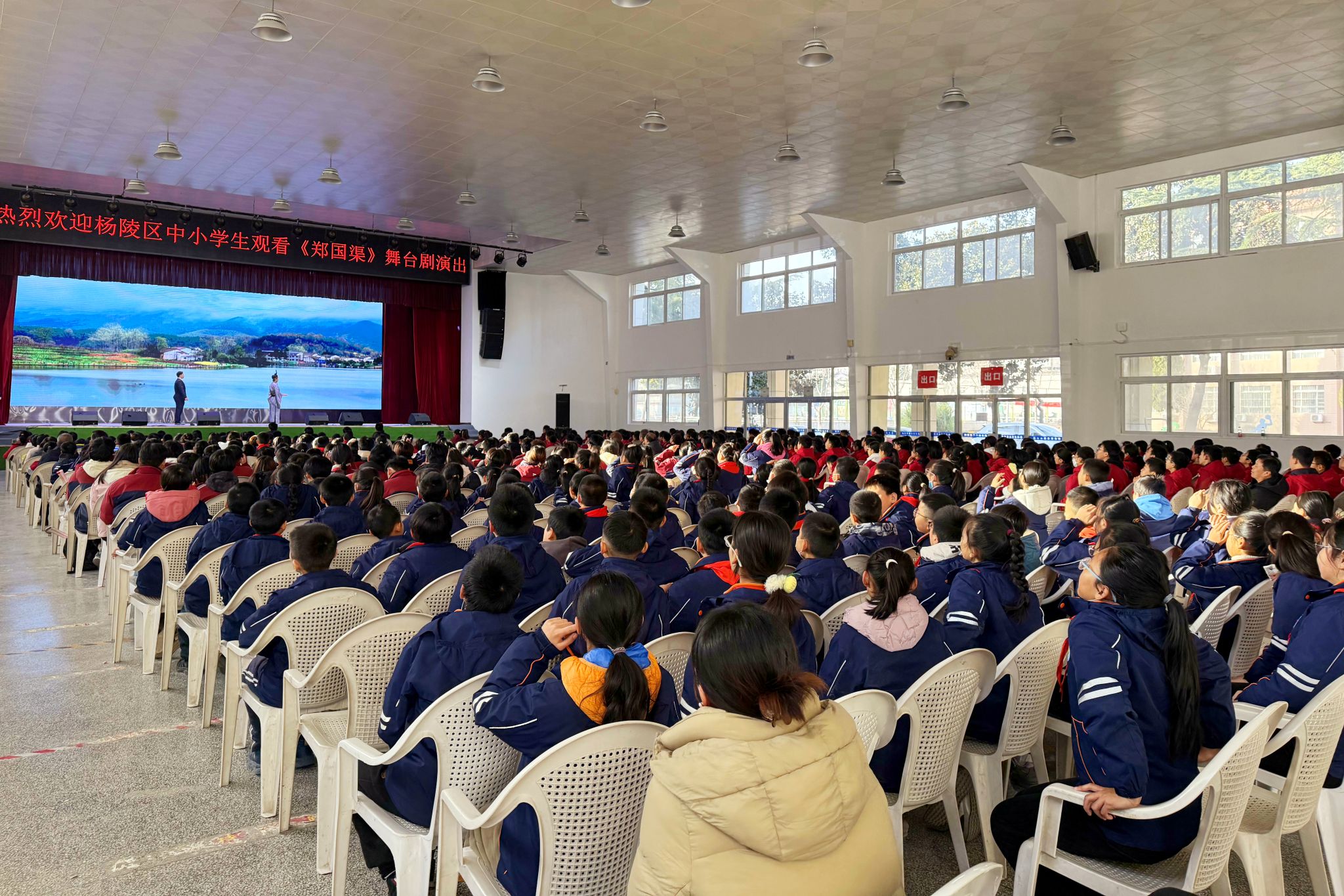 为弘扬中华优秀传统文化,加强大中小学思想政治教育一体化工作,12月13日下午,杨陵区教育局组织杨陵区中小学生来我校集体观看原创舞台剧《郑国渠》。杨陵区教育局局长王珺、副局长秦莉菲,我校马克思主义学院负责人,以及来自杨陵区第一实验学校、张家岗小学、杨陵小学、高新第三小学、职教中心、邰城实验学校、高新初级中学等450余名中小学师生共同观看了演出。