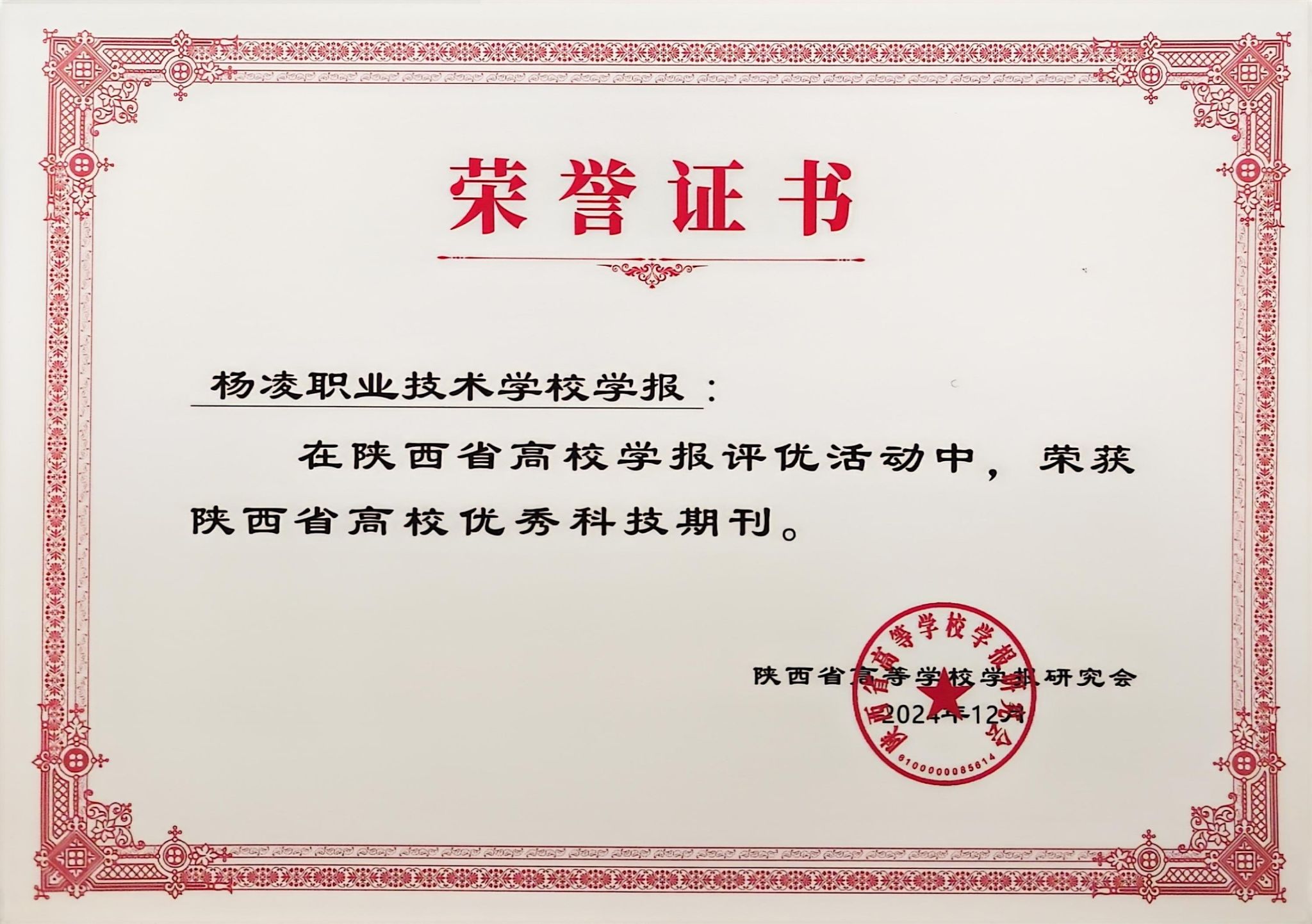 12月26日至27日,在陕西省高等学校学报研究会成立40周年之际,陕西省高等学校学报研究会学术期刊高质量发展研讨会在陕西临潼召开。会上,组委会对2024年陕西省高校学报评优结果进行了发布表彰。《杨凌职业技术学院学报》获评陕西高校优秀科技期刊。学报编辑部吴薇和董欣岚获评陕西省文科学报优秀编辑,并获文科学报优秀编辑学论著奖。