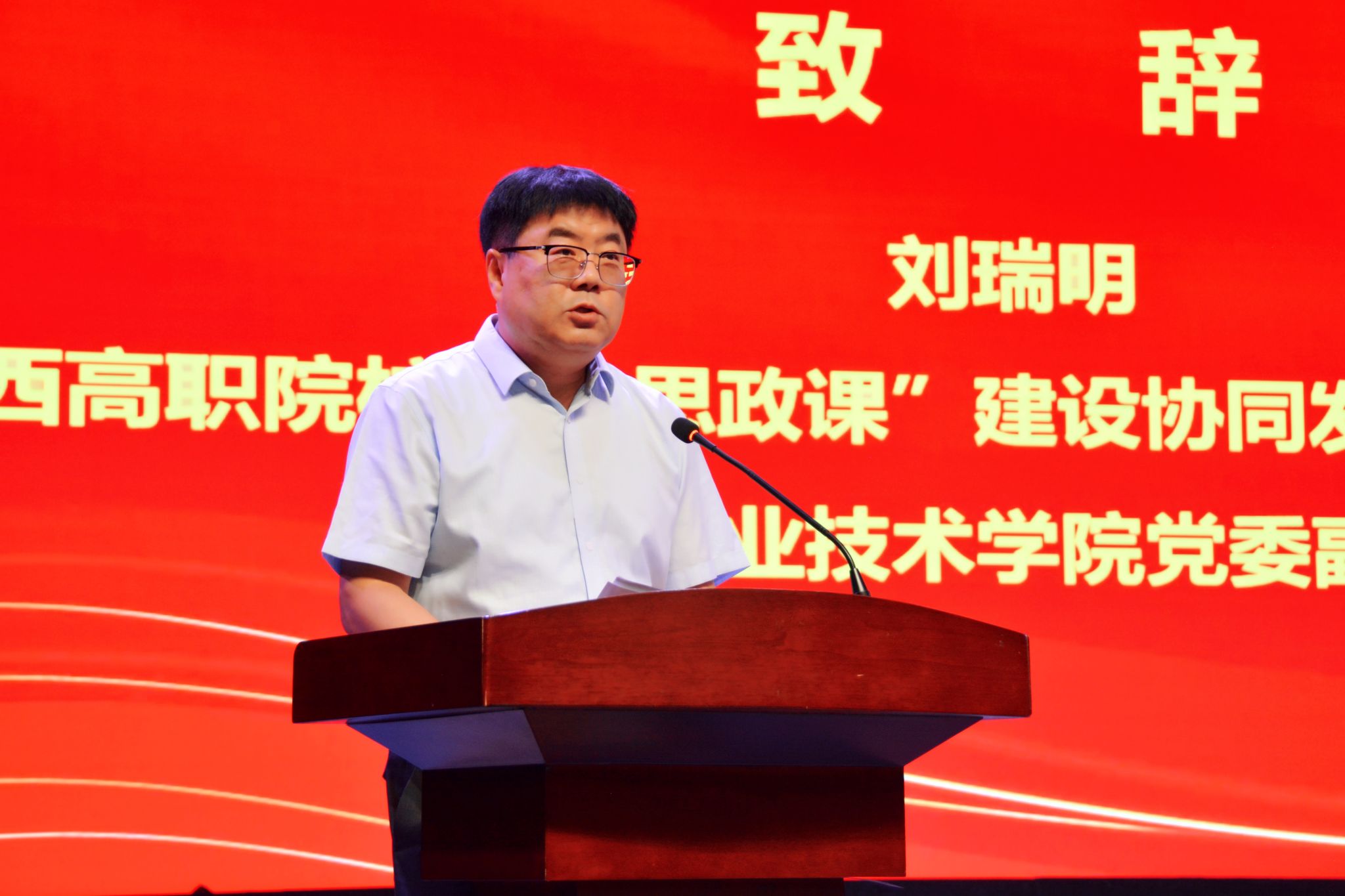 5月24日,由陕西高职院校“大思政课”建设协同发展联盟主办的2025年陕西高职院校思政课答疑解惑研讨暨思政课教师“大练兵”经验交流会在陕西艺术职业学院成功举办。联盟副理事长、学校党委副书记刘瑞明出席会议并致辞。马克思主义学院负责人及教研室主任、教师代表参加会议。