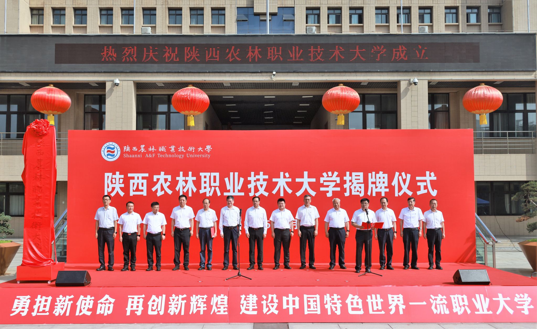 西北农林科技大学党委书记黄思光,杨凌示范区党工委书记史高领,省委教育工委委员、省教育厅副厅长吴振磊,杨凌示范区党工委委员、杨陵区委书记李函,杨陵区委副书记、区长李朝喜;学校党委书记韩明军,校长仲伟周,原党委书记王周锁,党委副书记、纪委书记王勇胜,副校长祝战斌、蒋平江、胡俊鹏等出席揭牌仪式。省教育厅、杨凌示范区、西北农林科技大学、杨陵区有关领导,学校校友及师生代表230余人,共同见证学校跨越发展的历史性时刻。揭牌仪式由学校党委副书记刘瑞明主持。