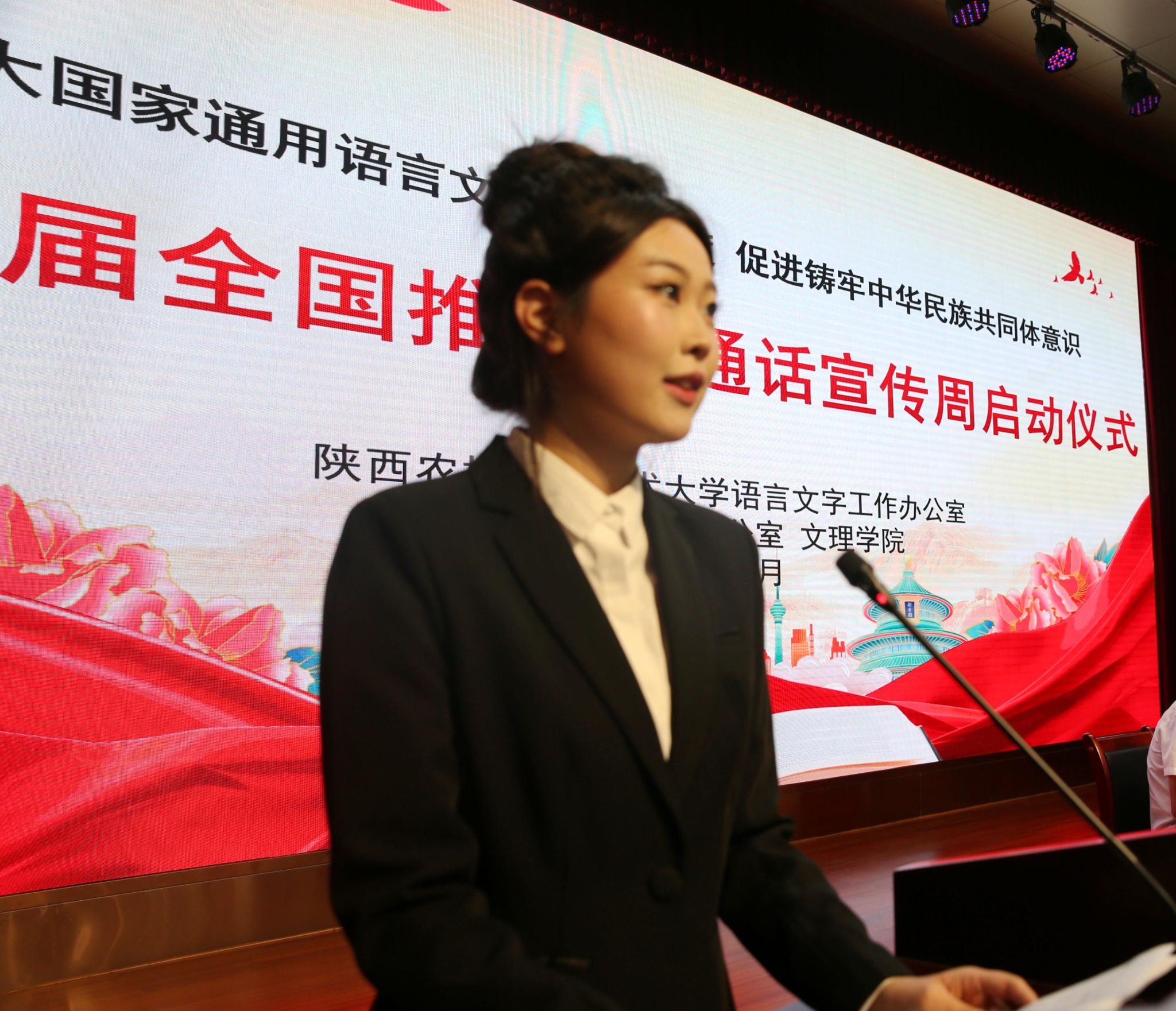 刘瑞明指出,国家通用语言文字是中华民族共同体的精神纽带,是传承中华优秀传统文化、弘扬民族精神的重要载体。希望广大师生树立终身学习理念,提高语言表达技巧,做语言文字的勤奋学习者;在课堂学习、生活交流等各种场合注意自身言行举止和使用文明语言,让“标准中国声、规范字”成为校园最美的风景,做语言规范的扎实践行者;用良好的语言文字展示师生良好形象,传递“礼仪之邦、泱泱大国”的气度和风采,做推普活动的有力传播者;肩负起新时代弘扬中华优秀传统文化的光荣使命,讲好中国故事,传递中国声音,促进铸牢中华民族共同体意识,做文化传承的坚定守护者。