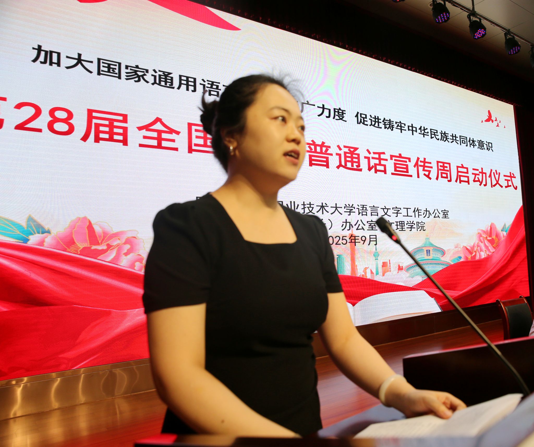 9月15日下午,学校在南校区思辩堂举行第28届全国推广普通话宣传周活动启动仪式。党委副书记刘瑞明出席活动并讲话,宣布推普周正式启动。