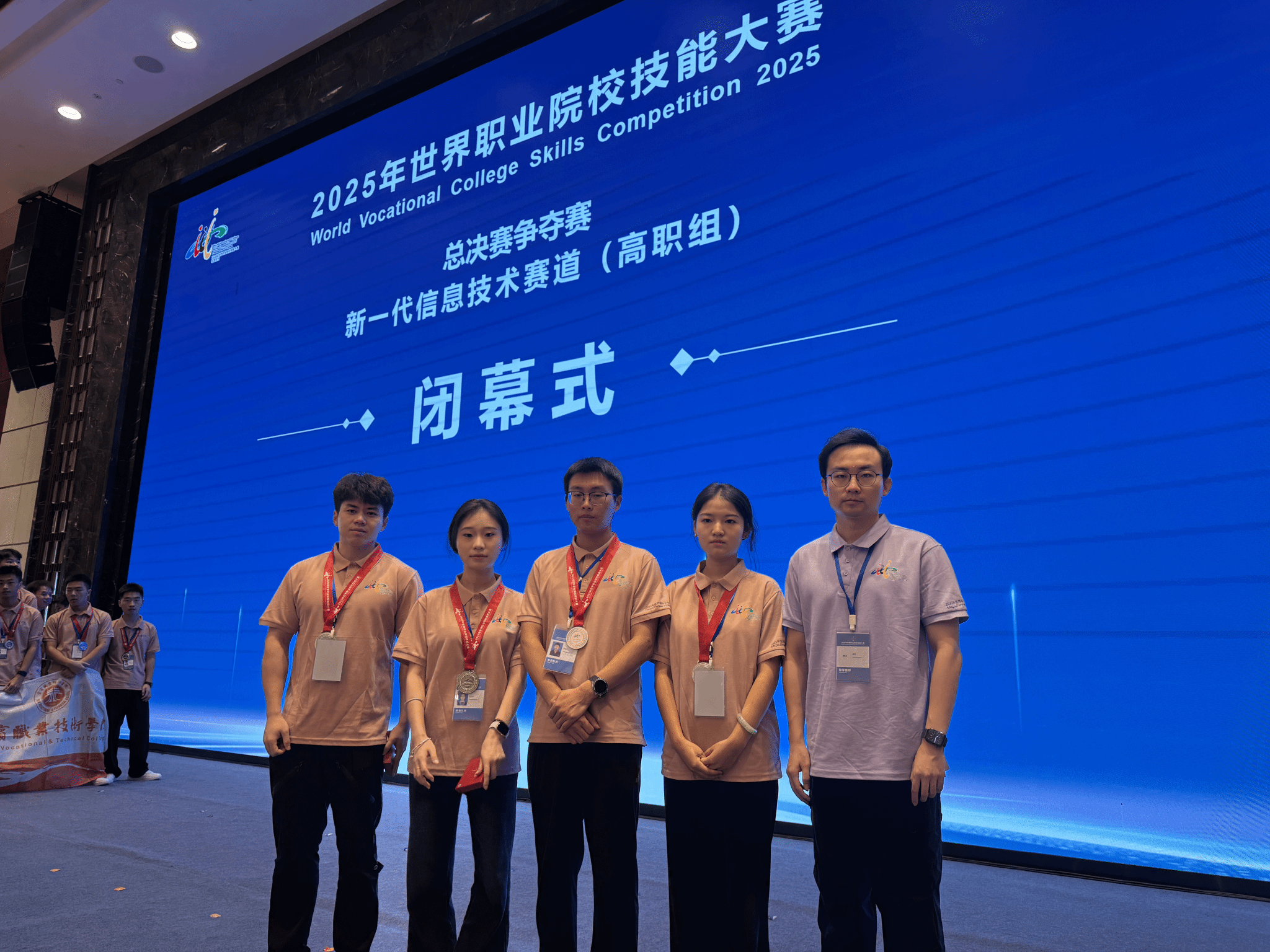 9月7日至12日,2025年世界职业院校技能大赛总决赛新一代信息技术赛道高职二组竞赛在江苏常州工业职业技术学院成功举办,共有来自全国31个省、市、自治区的60支精英队伍参赛。我校信息工程学院霍鹏、樊勇杰、冯仔月、梁超四位同学组成的参赛团队,凭借创新项目《星地协同,5G-A天地一体应急通信系统》荣获银奖。