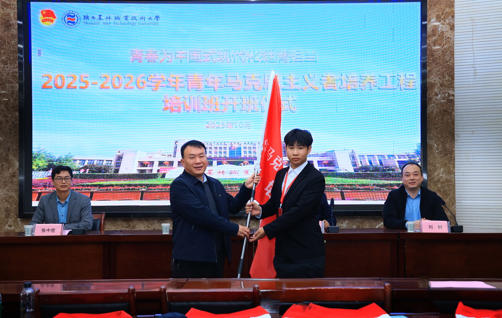 会上,王勇胜为“青马工程”培训班授旗,党委学工部负责人对“到延安去”・三秦学子圣地行活动进行了安排。