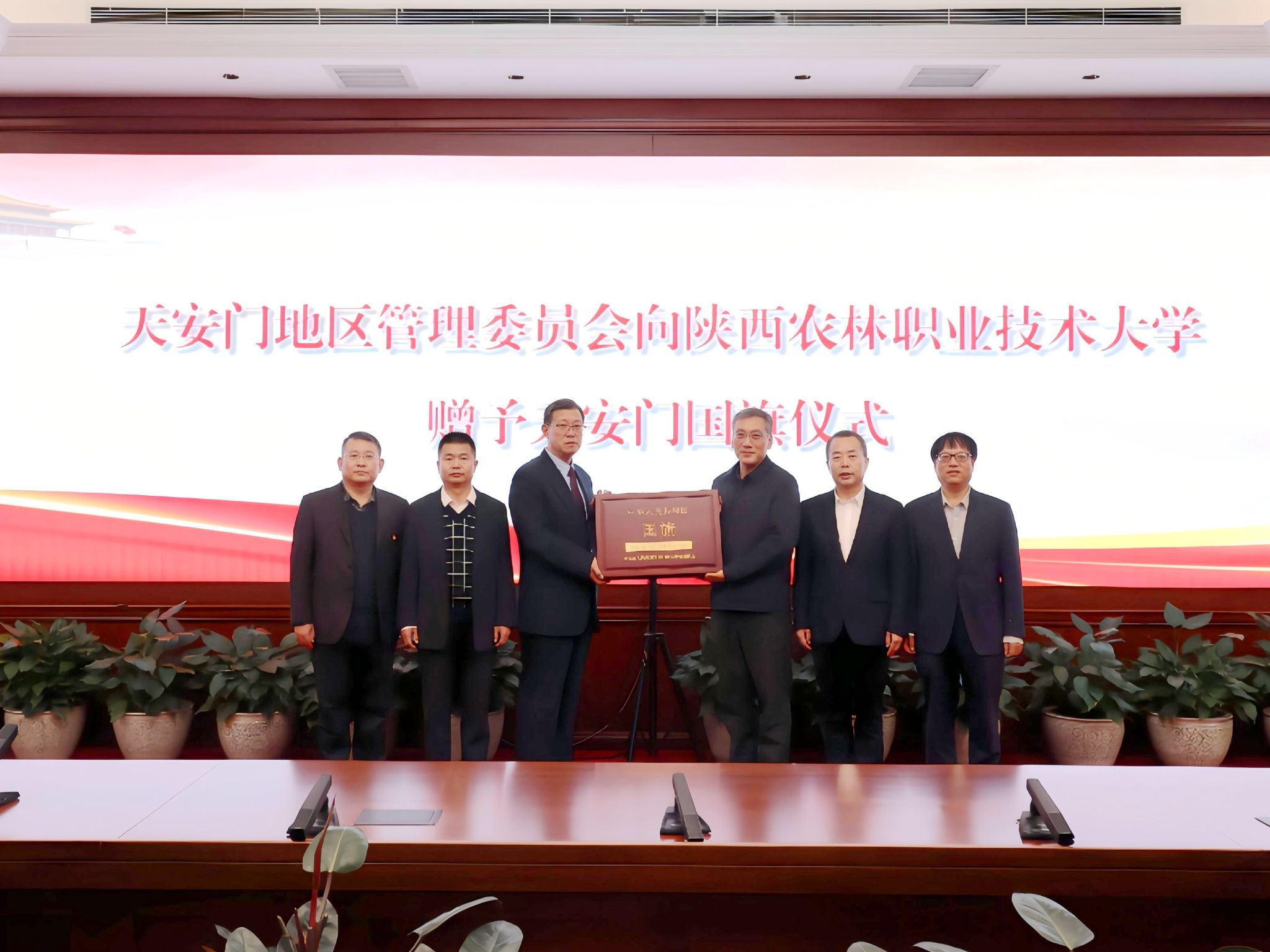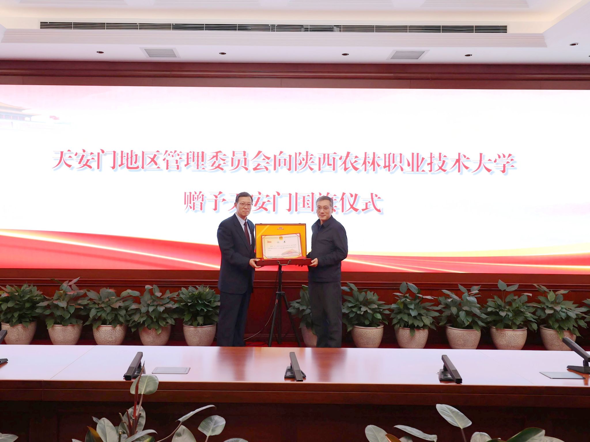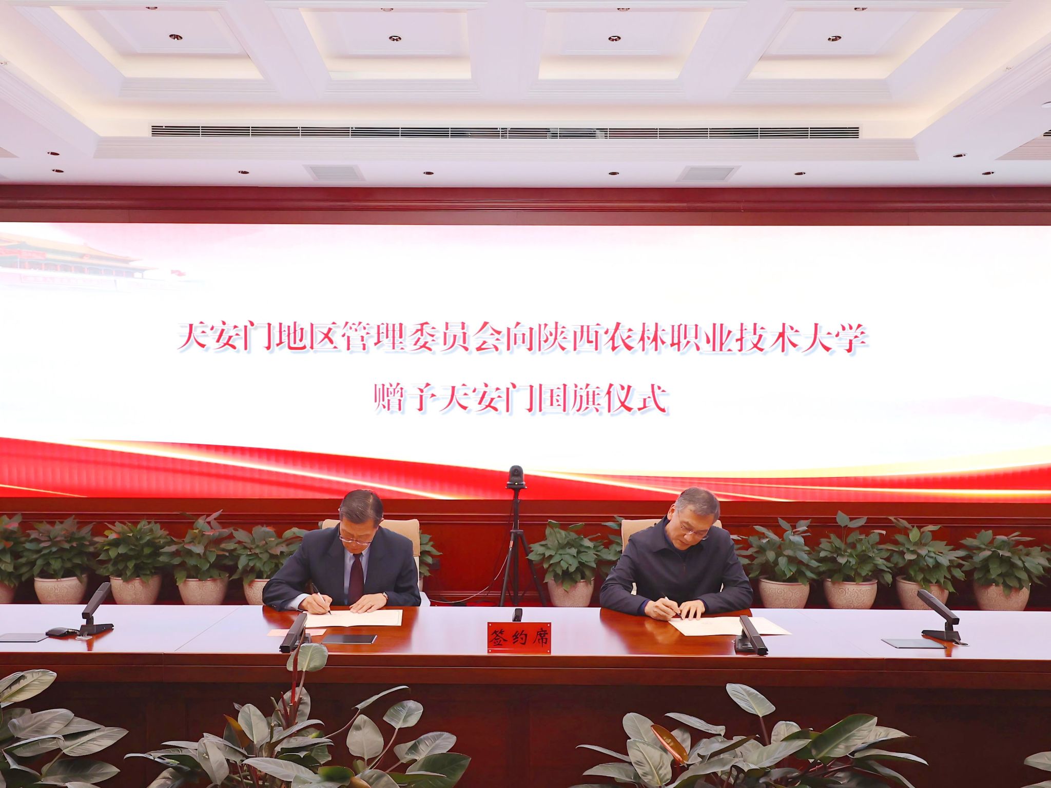 10月31日,北京市人民政府天安门地区管理委员会在天安门地区运行调度中心向best365足球官网赠送天安门国旗。天安门地区管理委员会党组成员、副主任姚辉(正局级)向学校赠送国旗,党委书记韩明军代表学校接收国旗,签订了《国旗赠予协议》。学校副校长胡俊鹏、招生就业处、党政办相关同志参加赠旗仪式。