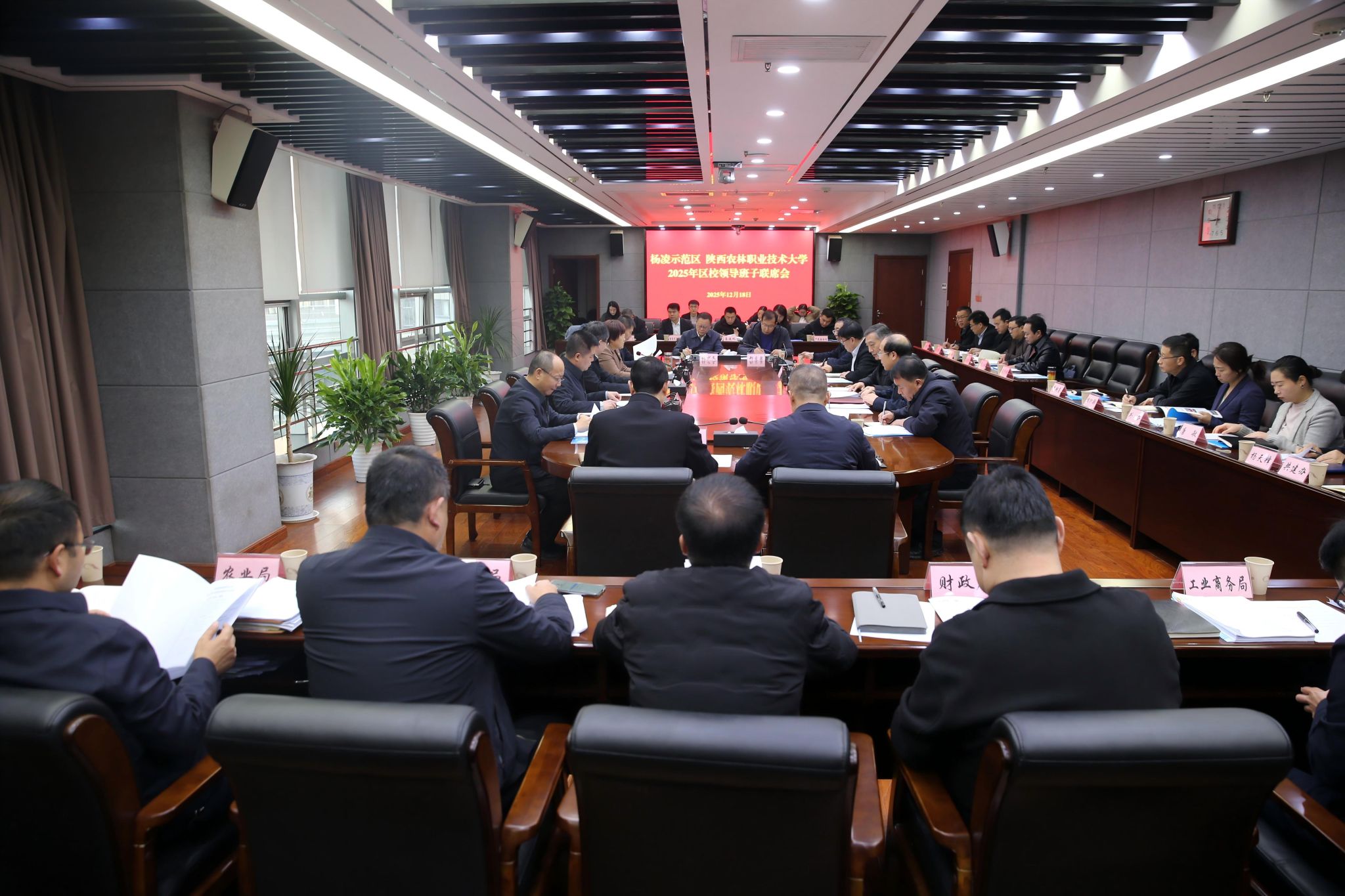 12月18日上午,best365足球官网与杨凌示范区领导班子联席会议在示范区政务大厦举行。学校党委书记韩明军,校长仲伟周,党委副书记刘瑞明、王勇胜,党委副书记、纪委书记、监察专员康强,副校长胡俊鹏;杨凌示范区党工委书记史高领,党工委副书记、管委会常务副主任何玲,示范区党工委副书记王军,管委会副主任袁鸿马,示范区党工委组织部长田晓炜等领导出席会议,双方相关部门负责人参加会议。联席会议由何玲主持。