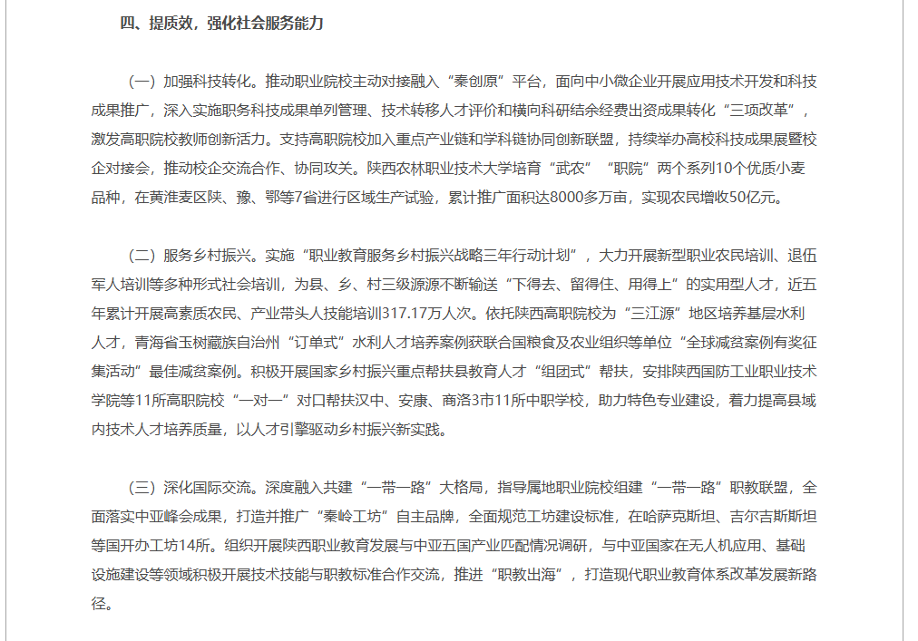 陕西省认真学习贯彻习近平总书记关于教育的重要论述,聚焦陕西现代化产业体系构建、促进城乡区域协调发展、扩大高水平对外开放等发展目标,持续强统筹、聚需求、促规范、提质效,积极构建区域现代职业教育体系建设新范式,推进职业教育高质量发展。