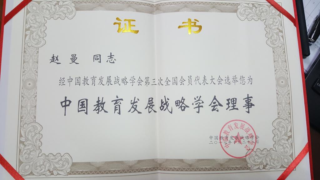 党委书记赵曼当选中国教育发展战略学会第三届理事
