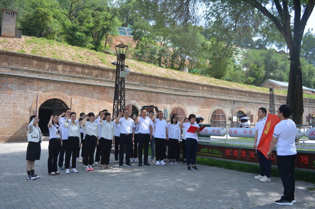 活动中,全体党员面向党旗重温入党誓词随后,大家参观了申新纱厂办公楼窑洞工厂等历史遗迹,认真听取荣氏申新纱厂内迁宝鸡、实业救国的珍贵历史事迹通过听讲解、浏览历史实物、图片、文献资料,大家详细了解纱厂内迁的时代背景和经过,重温了发生在宝鸡的那段热血沸腾的抗战历史感受了爱国奉献、自力更生、艰苦创业的抗战精神共同见证了民族企业家实业救国的伟大创举,接受了一次触及思想灵魂的深刻洗礼。